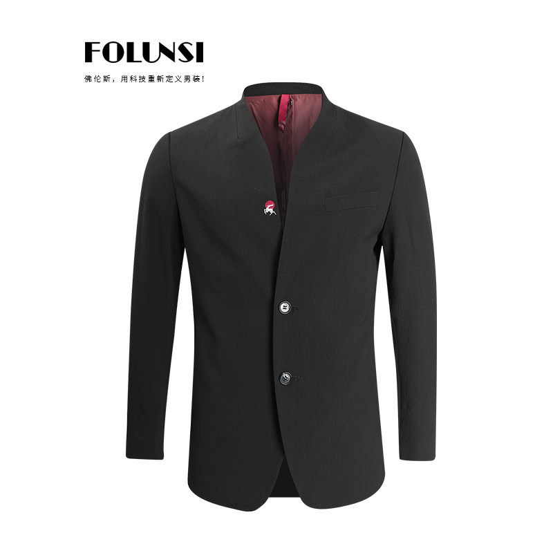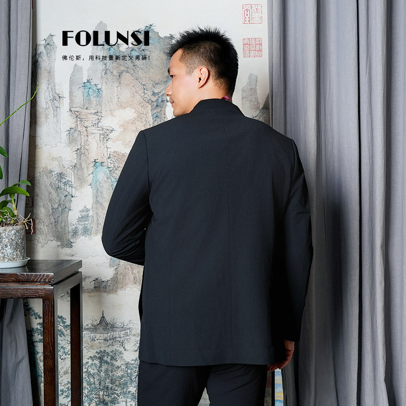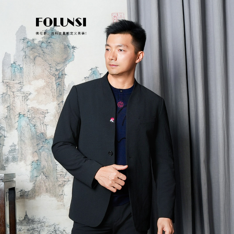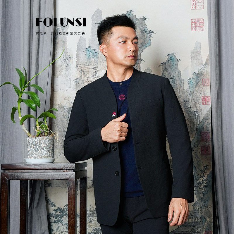 佛伦斯FOLUNSI新款秋冬季中式徽章休闲商务夹克外套男士舒适茄克