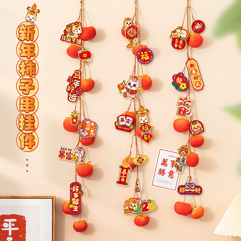 新年装饰品2026贺年柿子挂饰过年春节气氛围布置柿柿如意挂串挂件