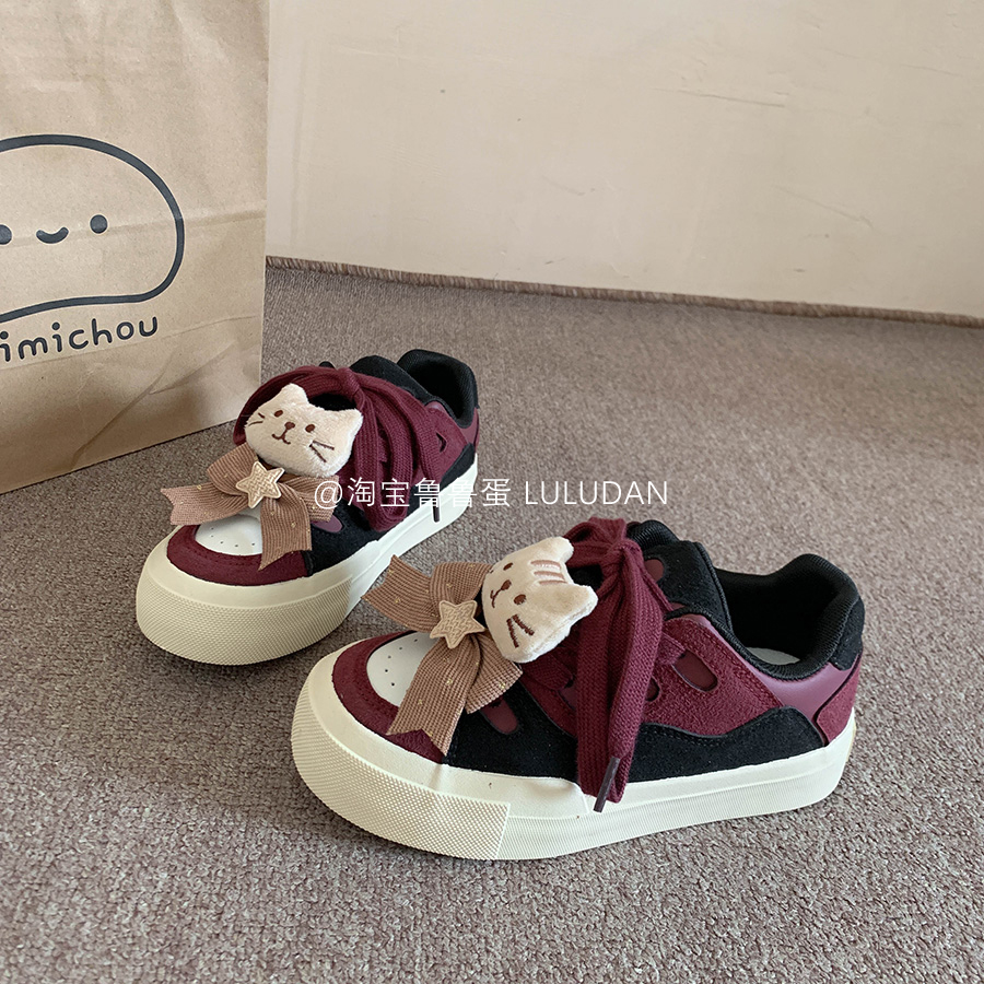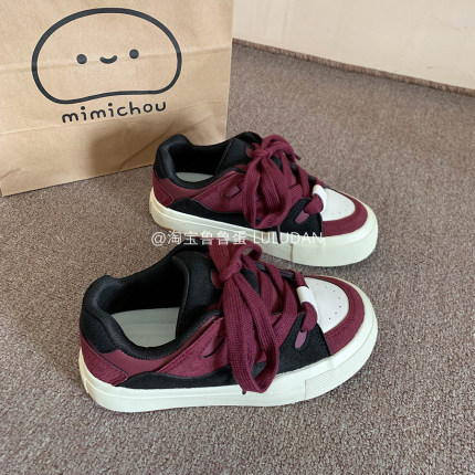 鲁鲁蛋 韩系小众板鞋女款2025新款学生厚底小白鞋ins休闲面包鞋潮