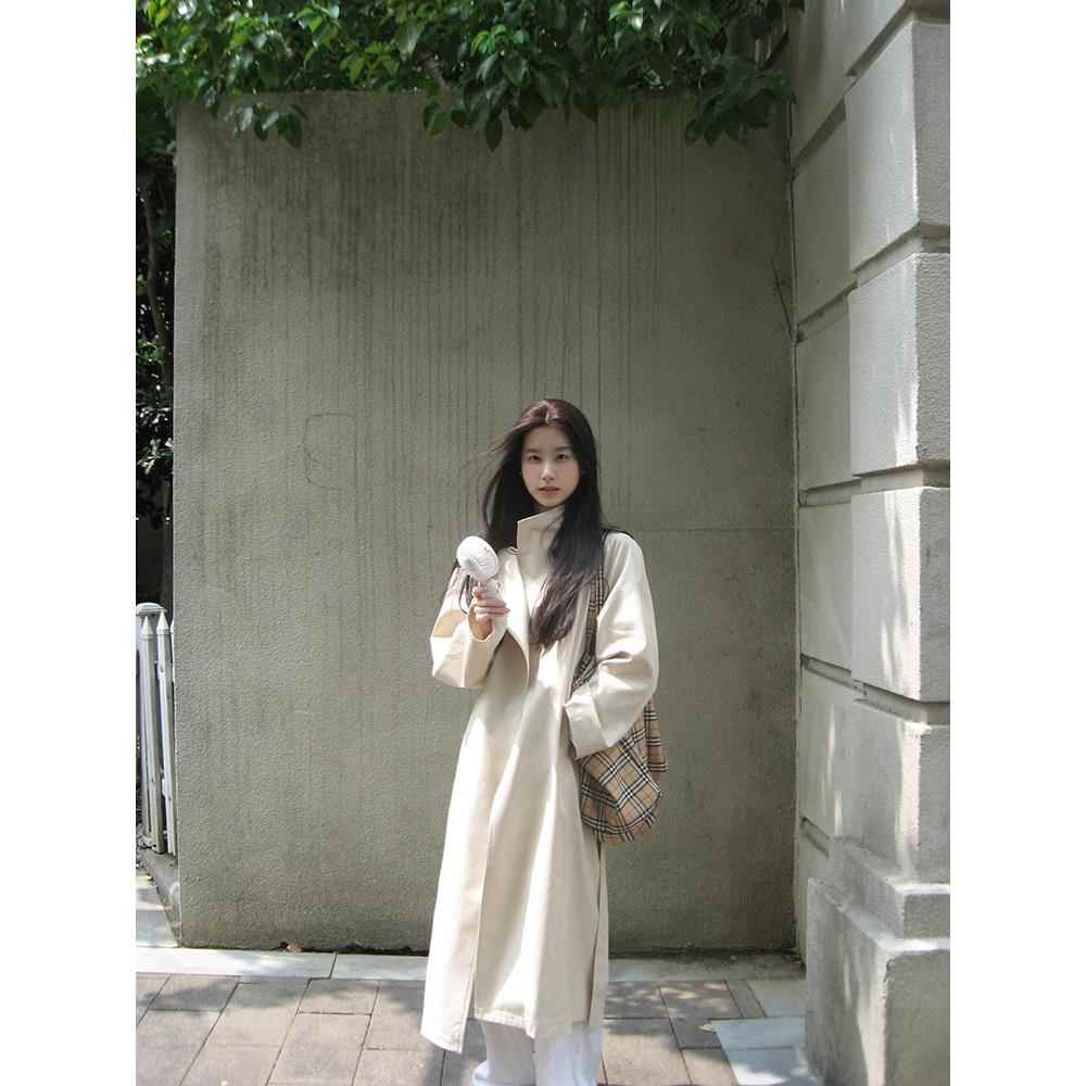 白色风衣外套女2025春秋新款韩系立领气质高级感超好看大衣中长款