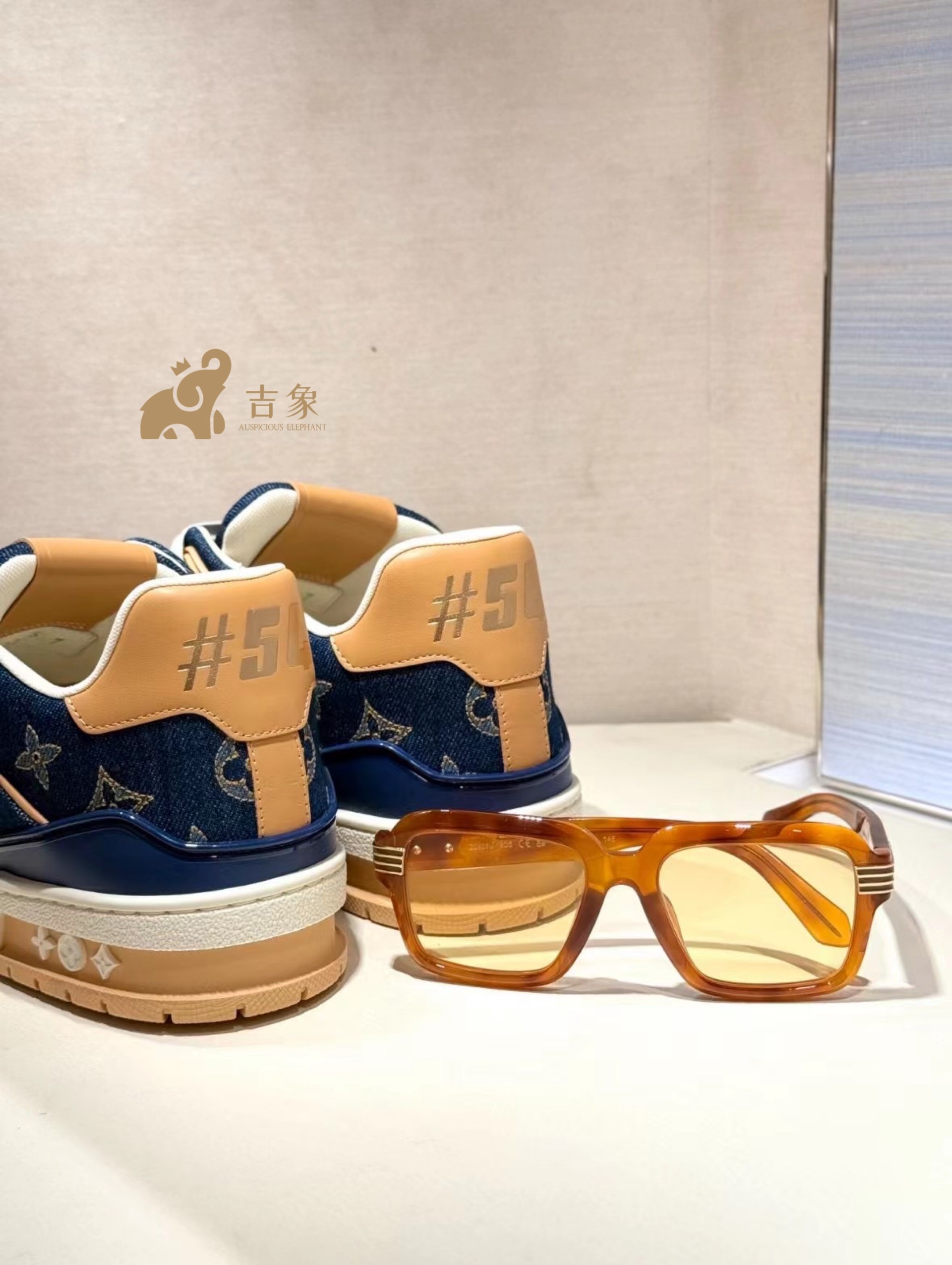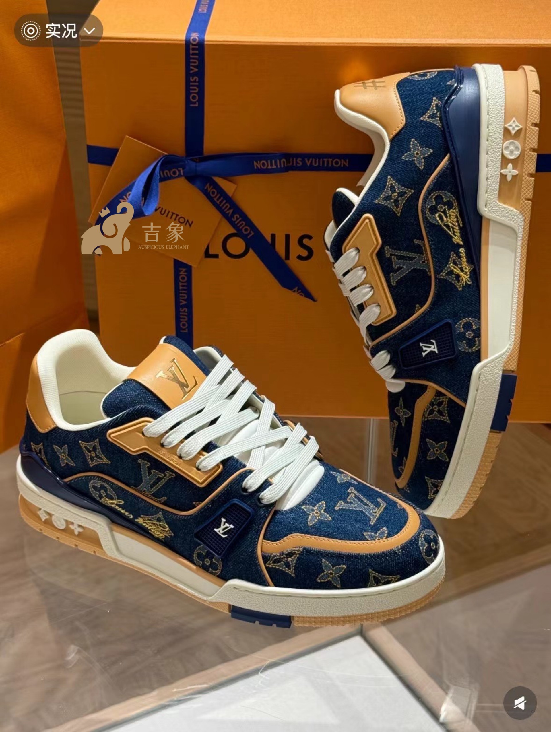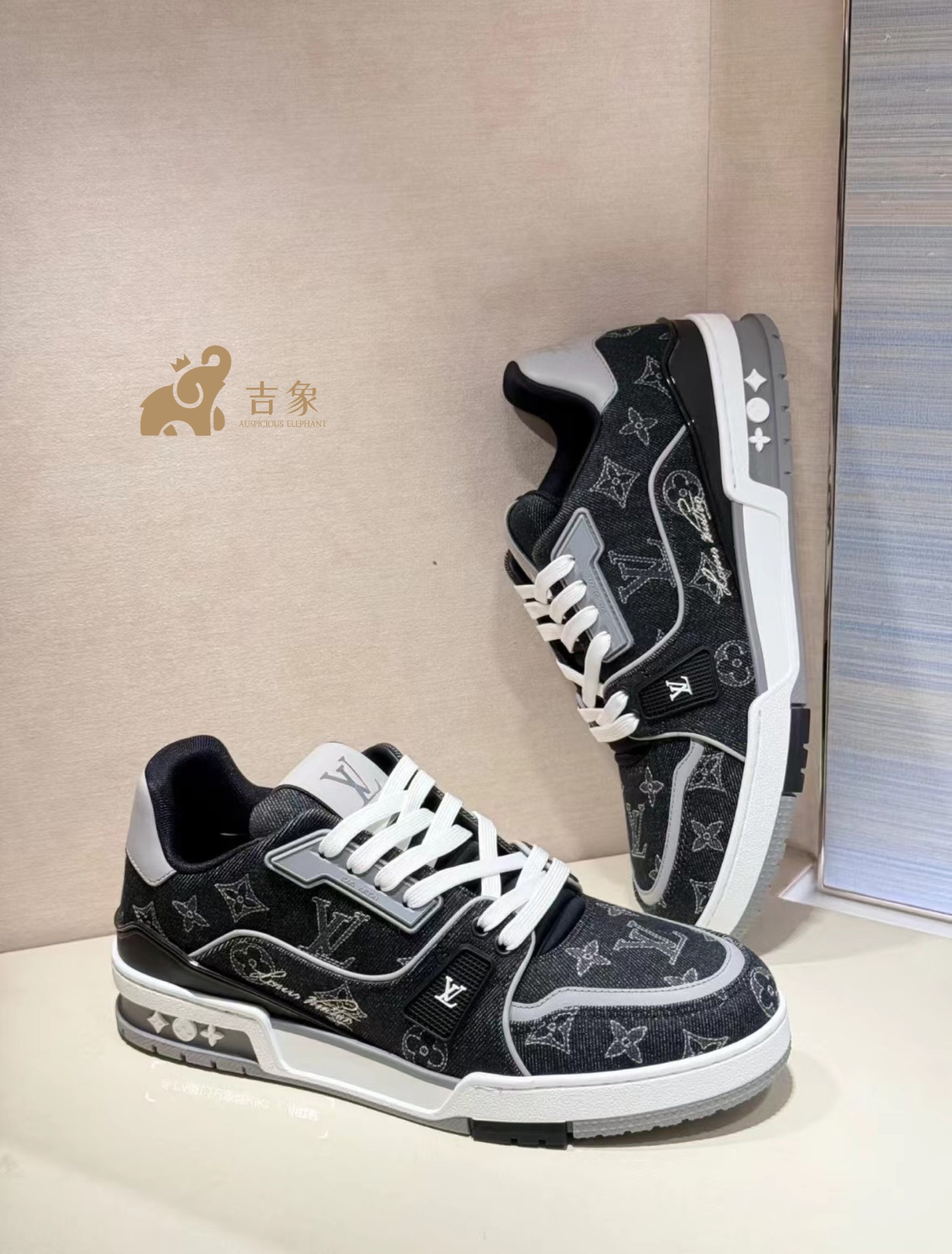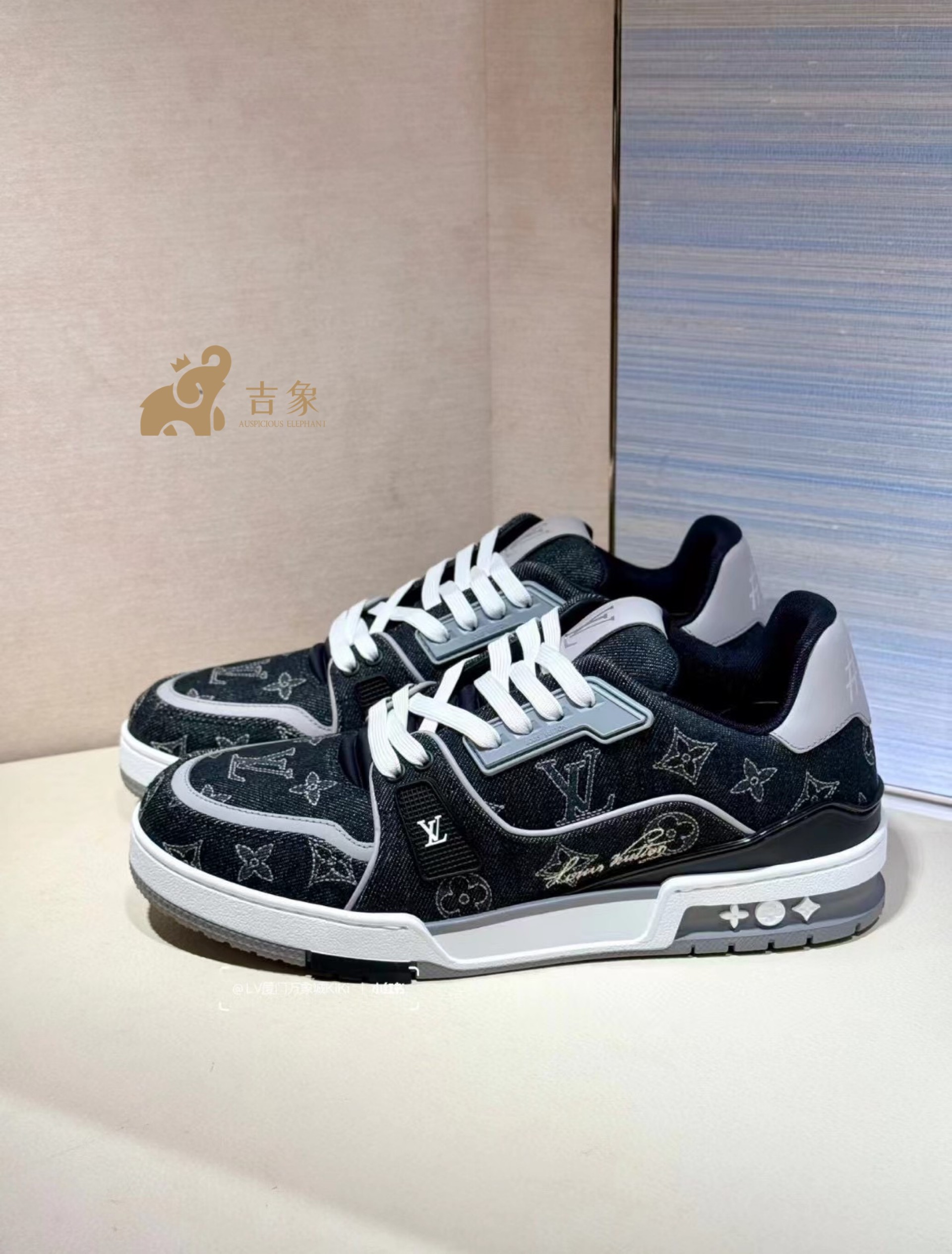 LV/路易威登新款男鞋Monogram 刺绣丹宁TRAINER 运动鞋板鞋1AJ338