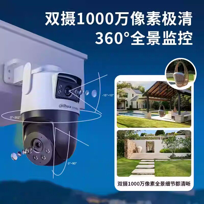 大华无线wifi家商用摄像头360度全景双镜手机远程全彩监控摄影头