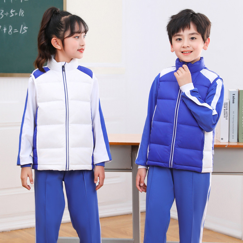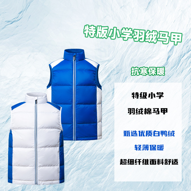 特版深圳校服羽绒马甲男童女童冬保暖白鸭绒防风保暖新国标90%绒