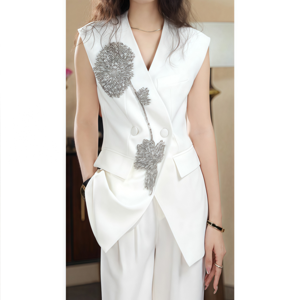 钉珠立体花纯色马甲直筒裤套装女