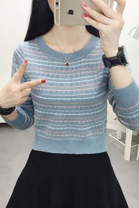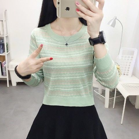 新款条纹女士毛衣小个子针织衫洋气上衣潮短款打底衫女长袖上衣潮
