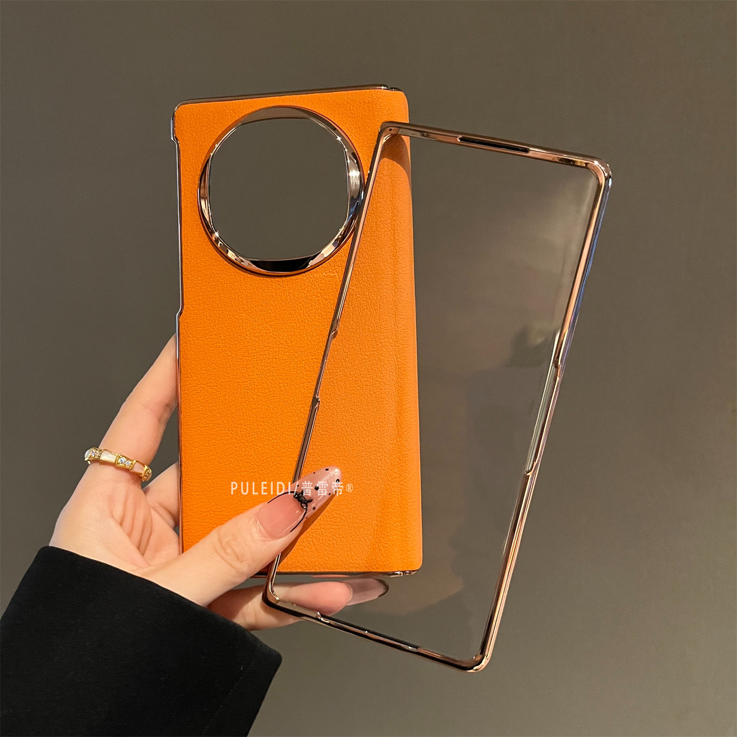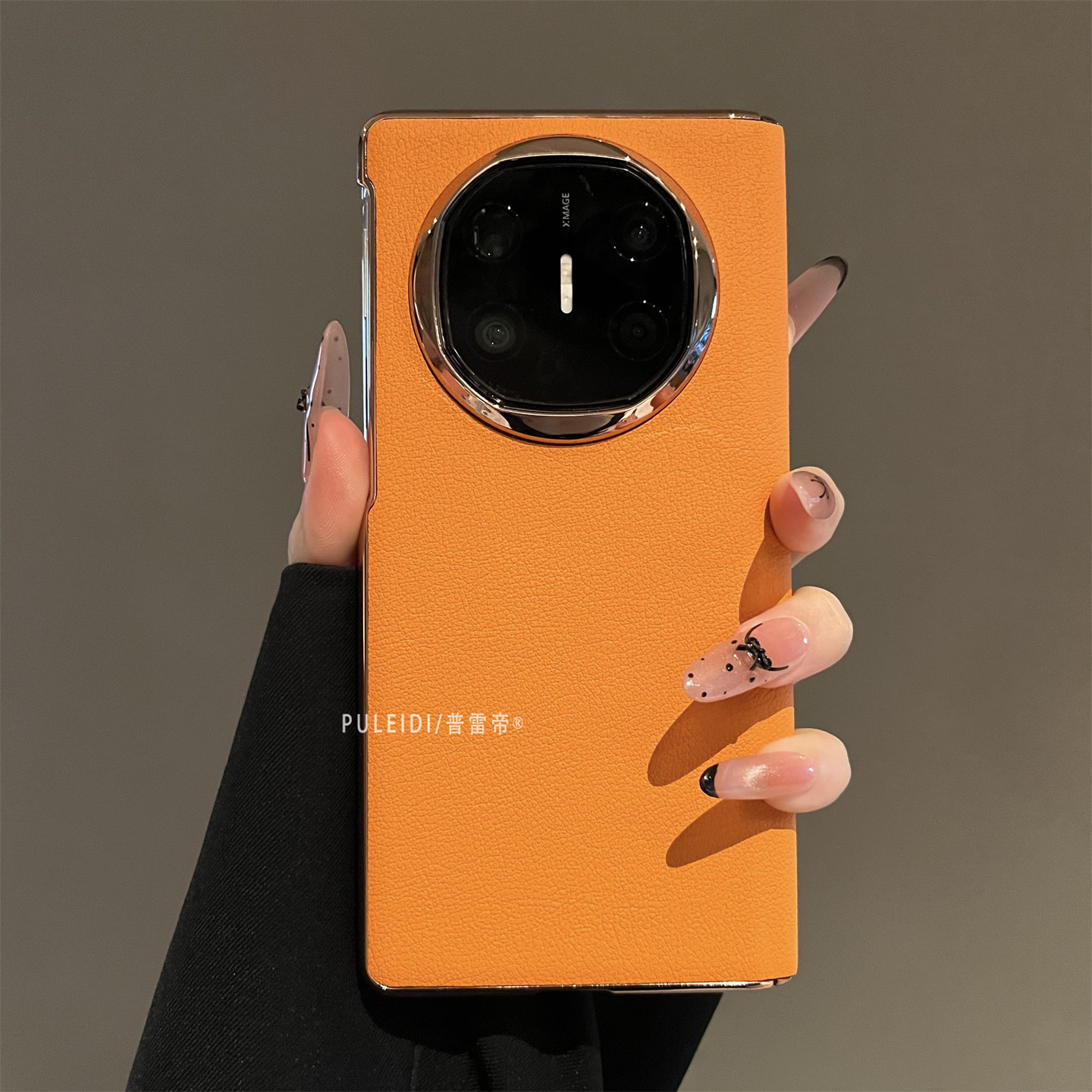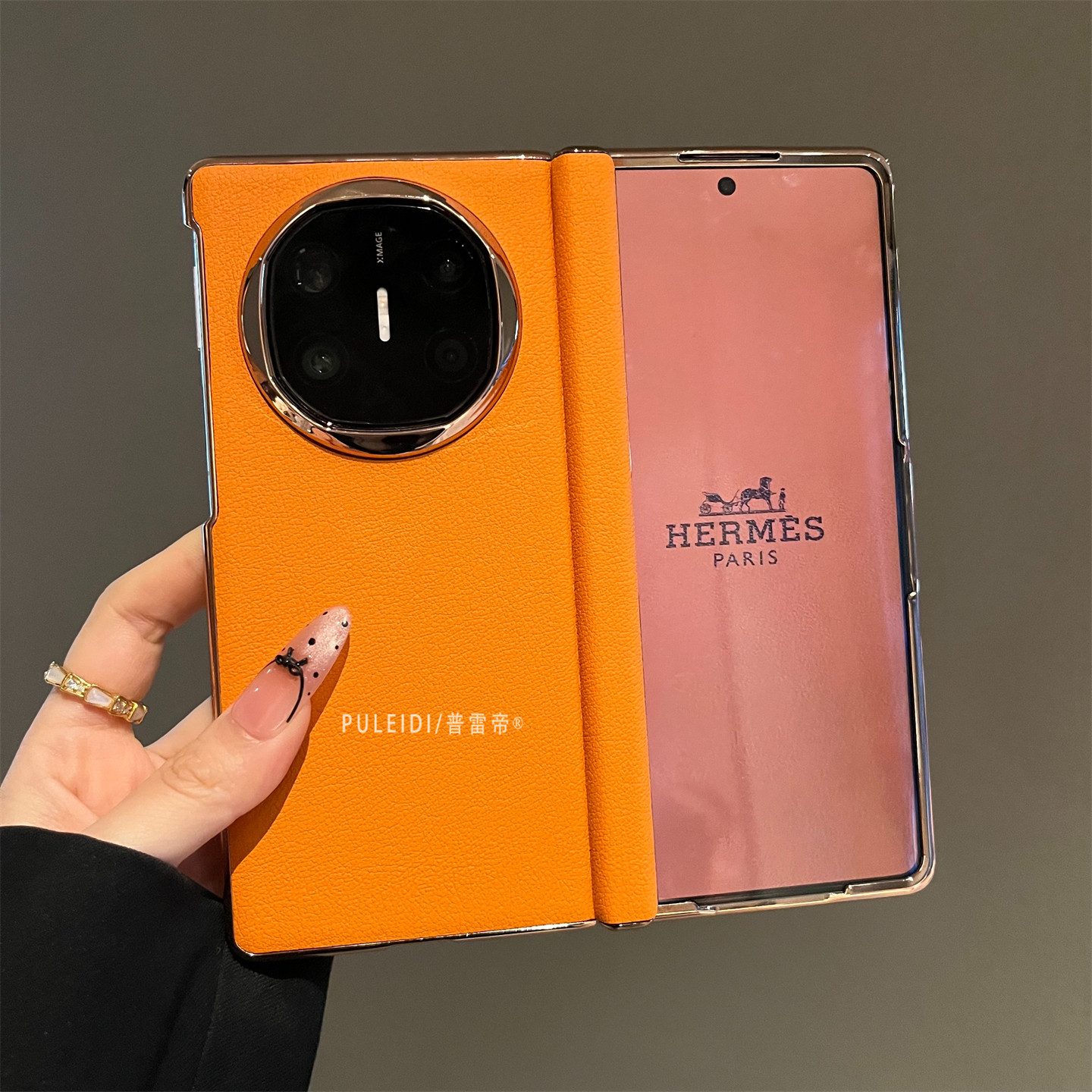 荔枝纹爱马仕橙适用MateX6典藏版折叠屏手机壳高档MateX5磁吸中轴全包防摔MateX3高清玻璃前框