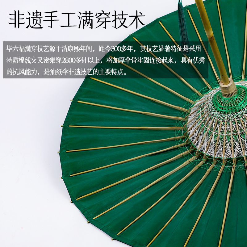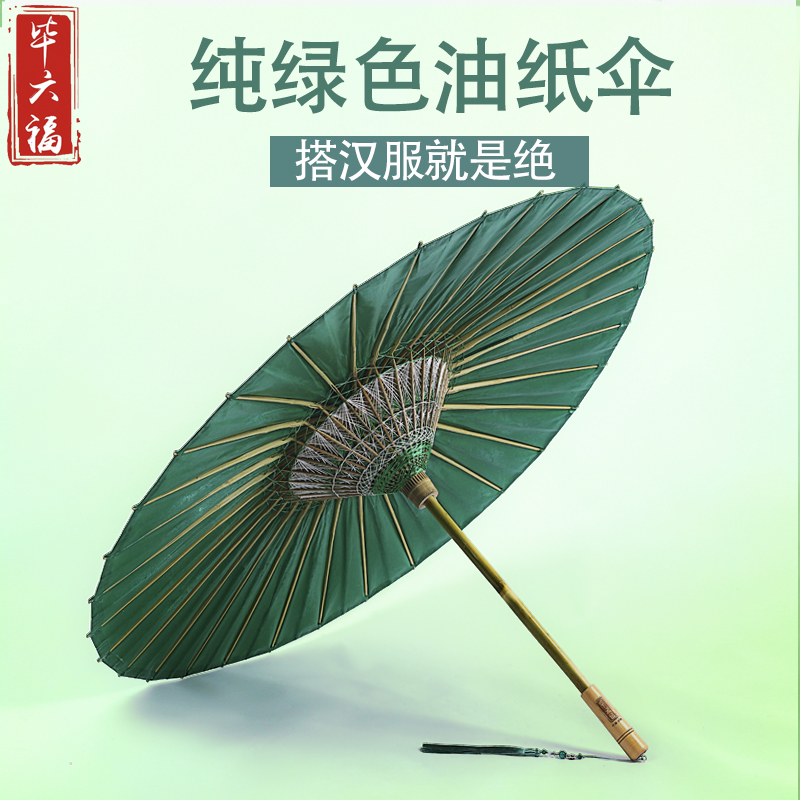 毕六福绿色油纸伞古风道具防雨防晒实用汉服旗袍纯色无味手工雨伞