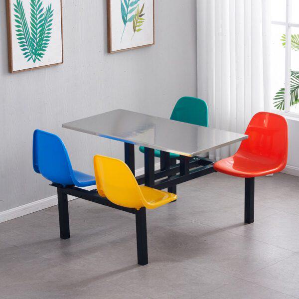 学校学生员工饭堂餐厅桌椅4人8人四人位连体不锈钢食堂餐桌椅组合