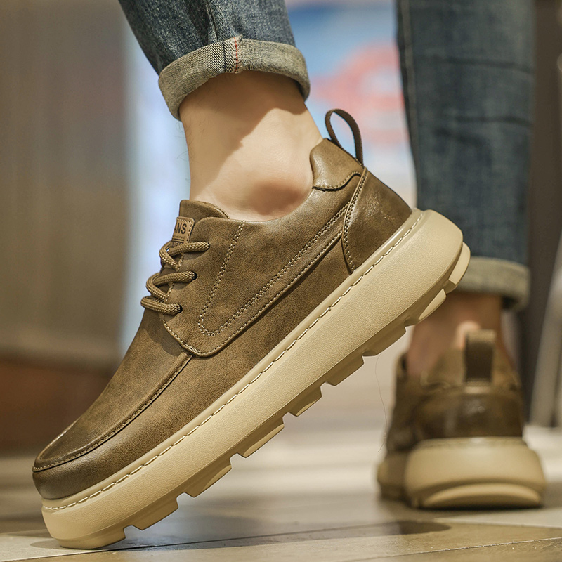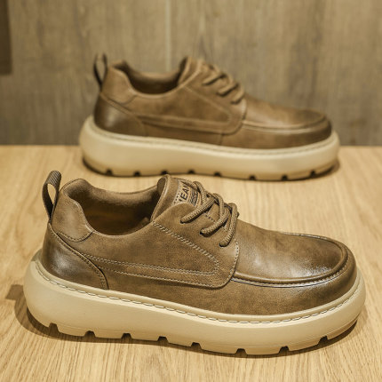 男鞋2025新款秋季英伦复古休闲棕色皮鞋男士百搭户外运动工装板鞋