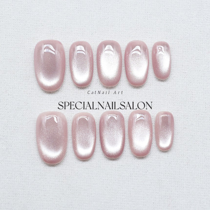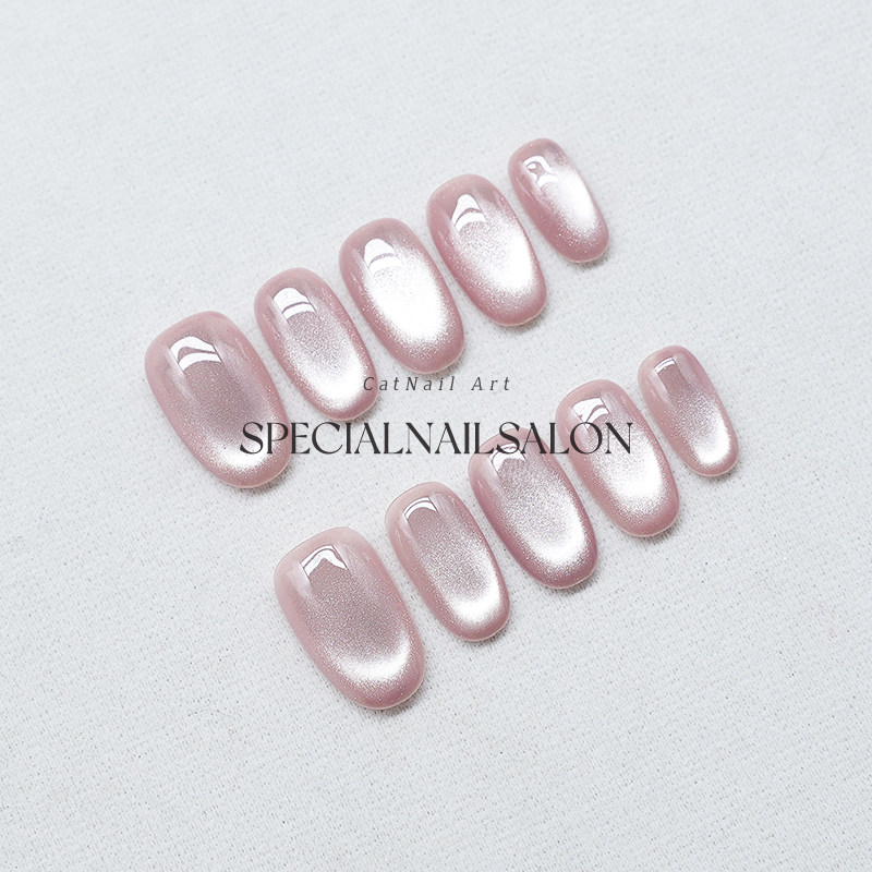 【极简主义】纯手工穿戴甲裸色清透猫眼日常百搭温柔显白美甲贴片