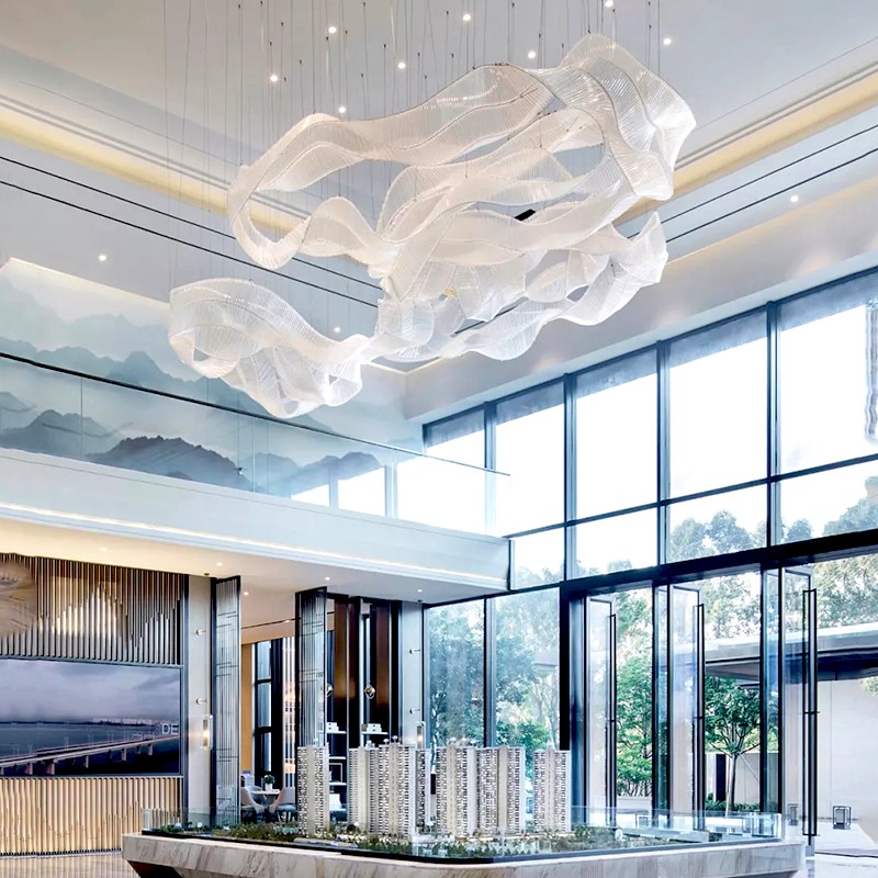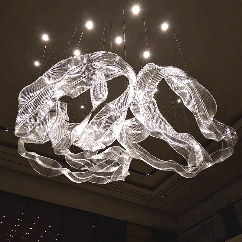 酒店大堂飘带水晶灯宴会厅工程定制展厅会所售楼部沙盘艺术大吊灯