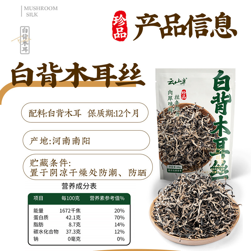 云山半木耳丝白背木耳丝100g免切螺蛳粉配菜凉拌菜火锅食材