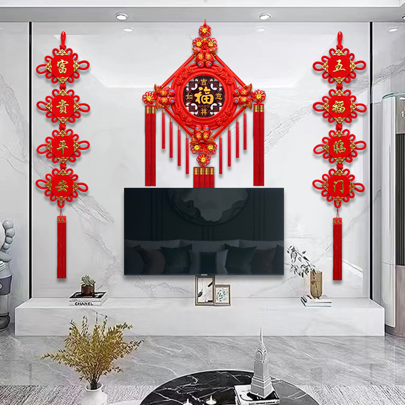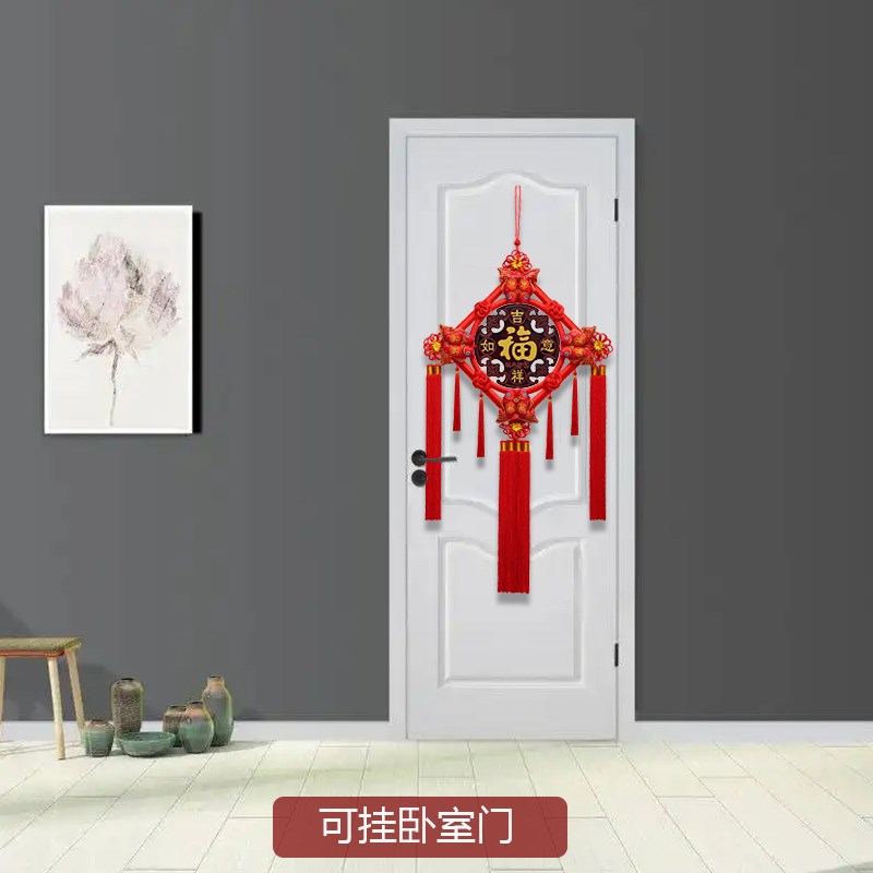 中国结挂件客厅大号桃木福字镇宅玄关门上背景墙春节对联挂饰