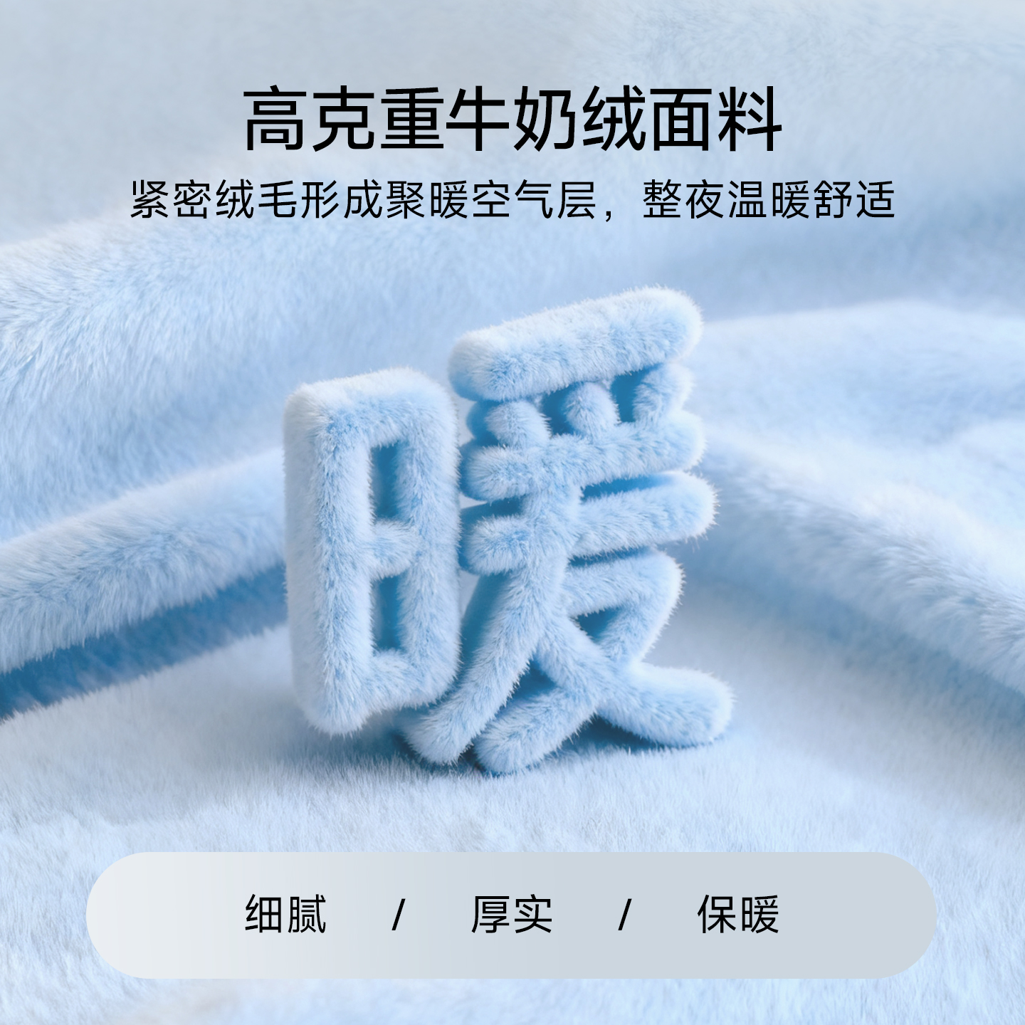 TeenieWeenie秋冬小熊蓝色牛奶绒四件套双面绒珊瑚绒儿童被套床品