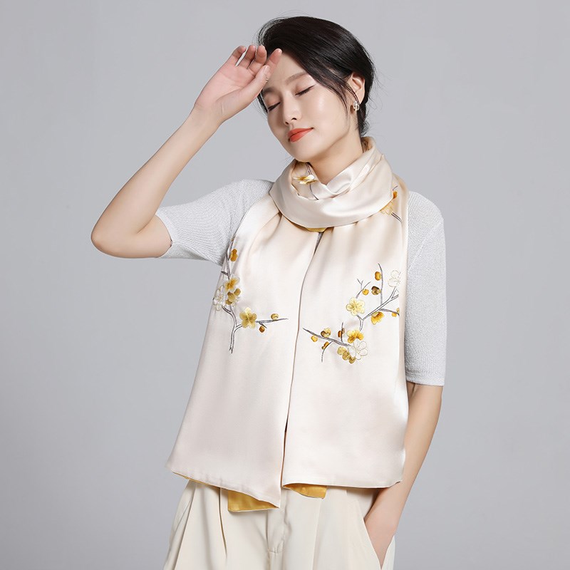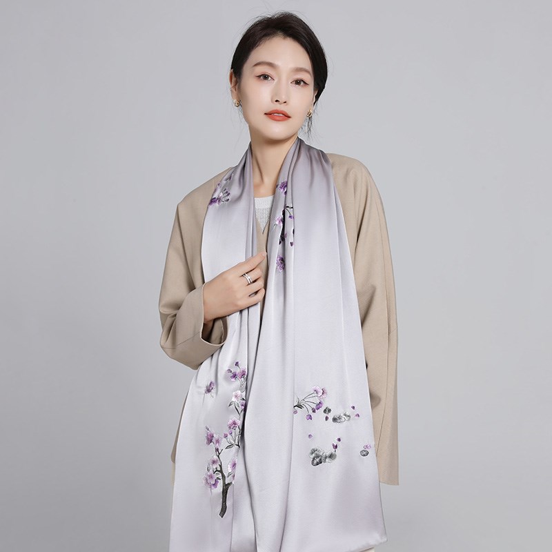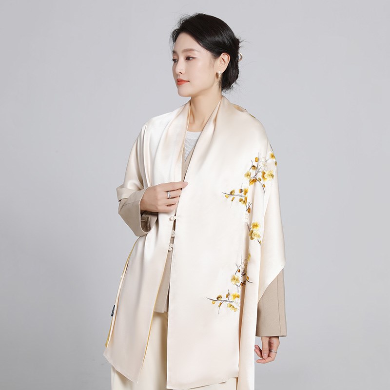 手绣披肩桃花行曲蜀江锦院蜀绣桑D蚕丝围巾外搭送女友情人节礼物
