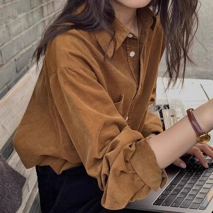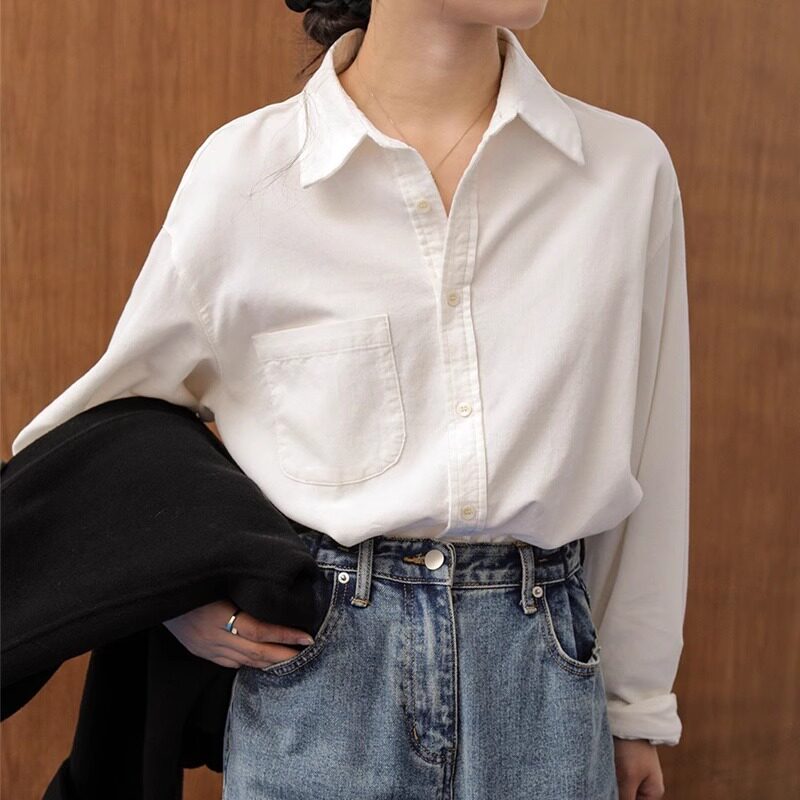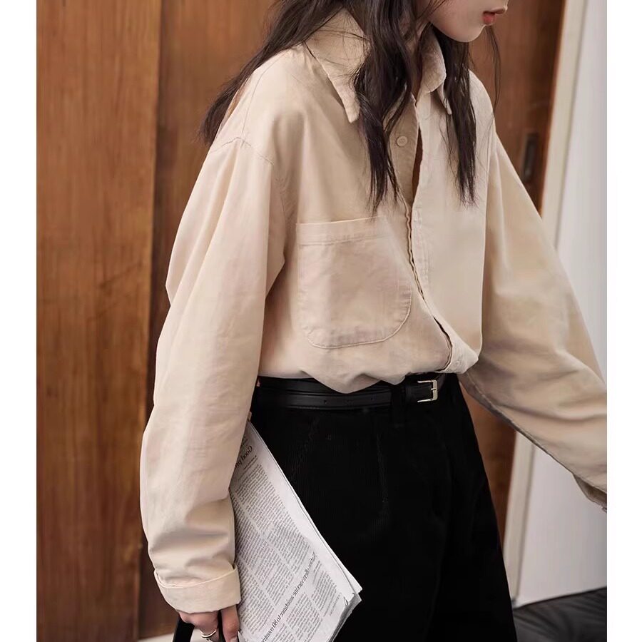 港风通勤打底宽松长袖磨毛衬衫