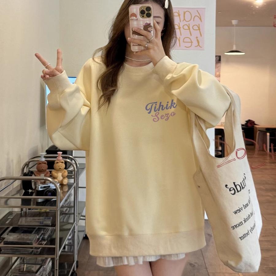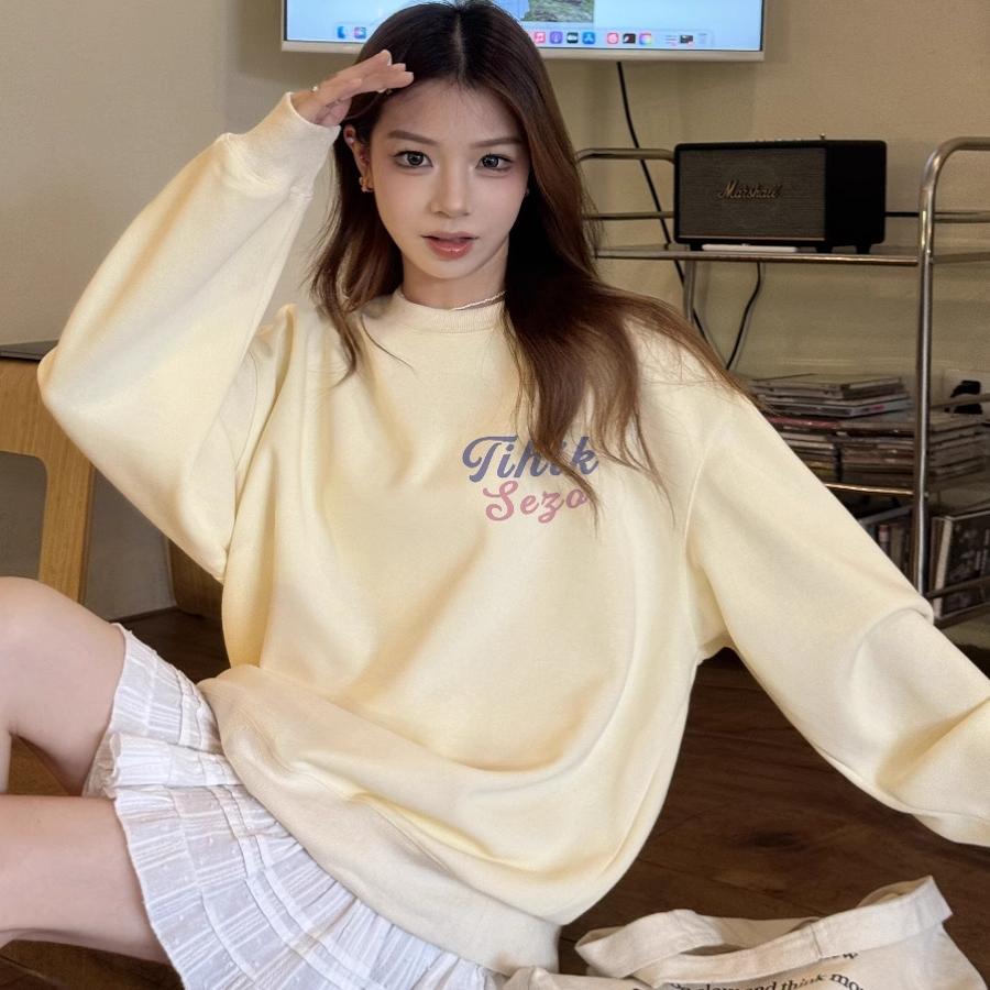 无帽圆领卫衣女2025新款秋冬季小个子韩系慵懒风加绒加厚套头上衣