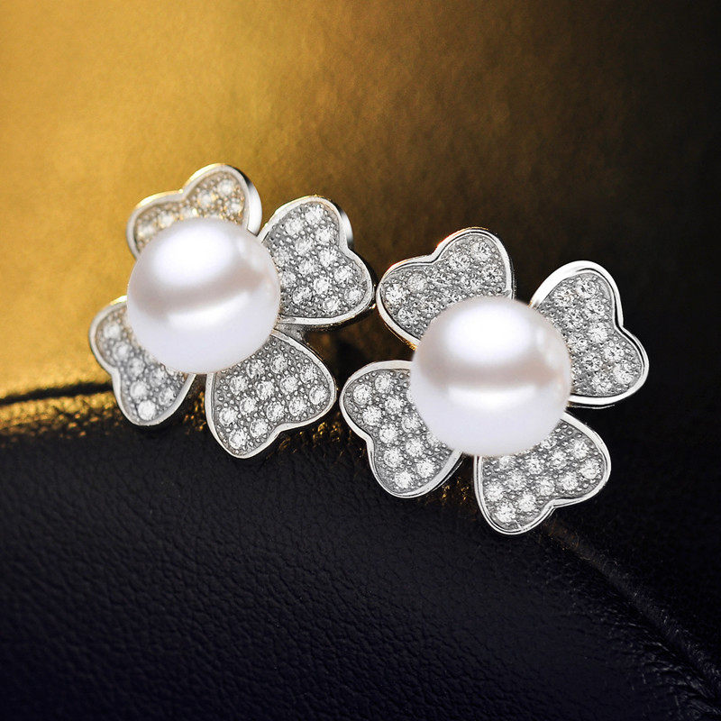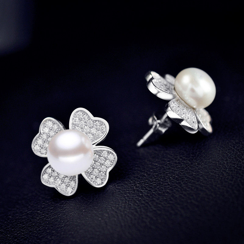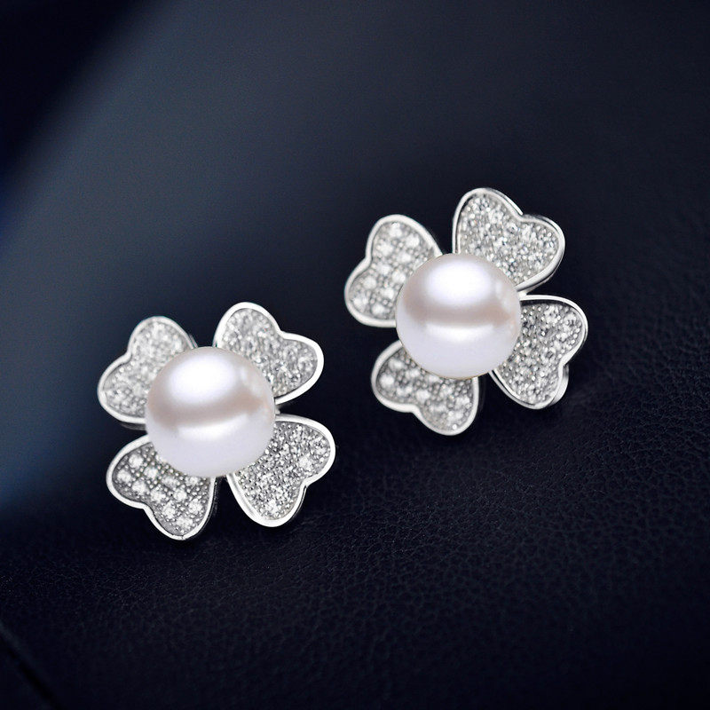 许愿草S925银淡水珍珠耳钉耳饰耳钉女 气质 韩国 个性情人节礼物