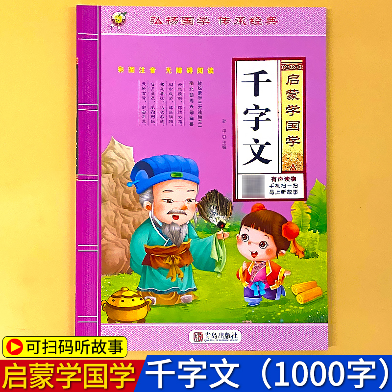 千字文儿童启蒙国学全文完整版有声读物正版幼儿园中大班彩图注音大字经典朗读绘本少儿小学生一二三年级课外阅读书籍学前宝宝早教