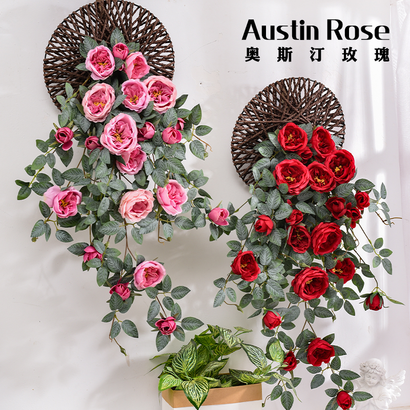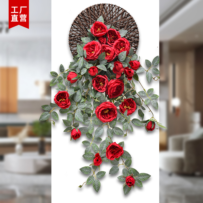 仿真玫瑰花藤壁挂吊兰假花塑料植物室内摆设垂吊花墙客厅玄关装饰