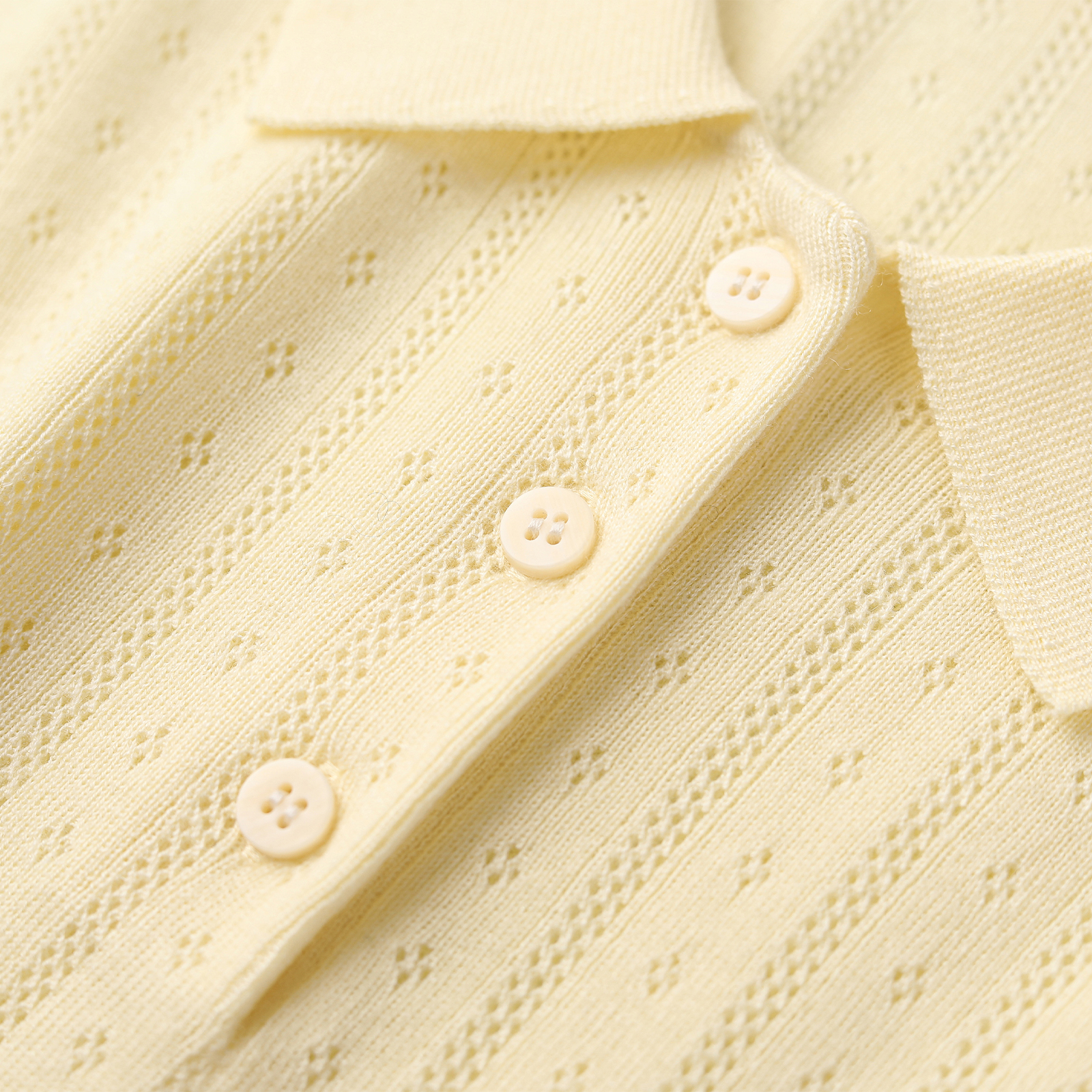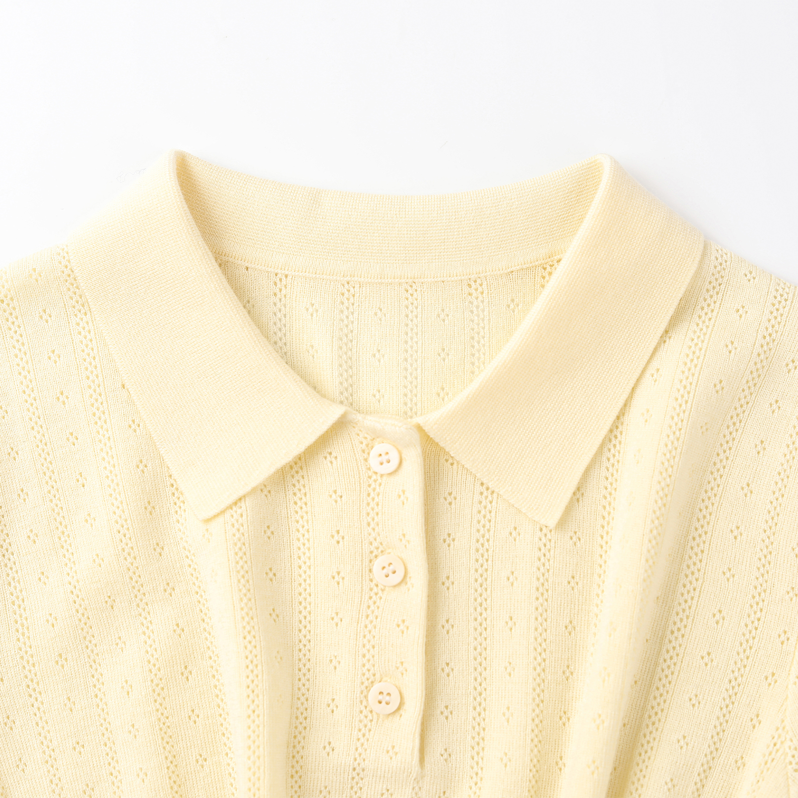 wana try羊毛镂空钩花短袖针织衫2025早秋新品韩系时髦简约上衣女
