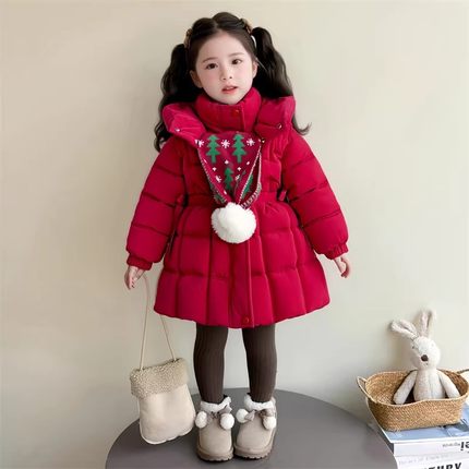 女童红色棉服新款儿童拜年服女宝宝冬加绒加厚棉衣棉袄外套新年装
