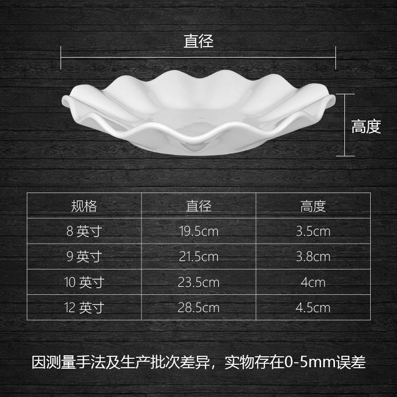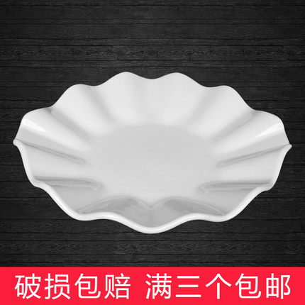 酒楼饭店餐具日式纯白色陶瓷荷叶盘商用炒菜盘创意牛排盘水果盘子