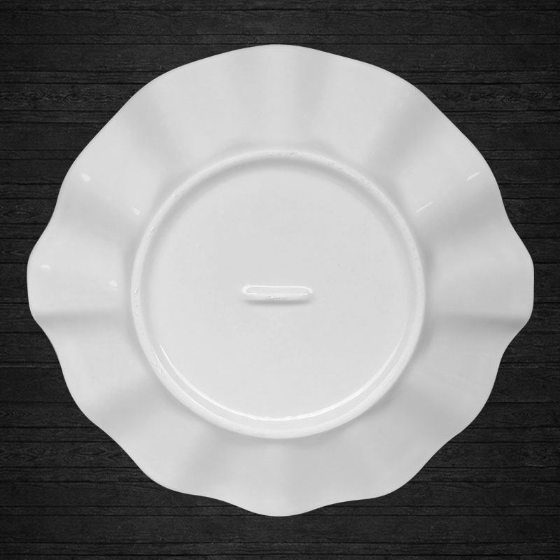 日式纯白色陶瓷荷叶盘商用炒菜盘