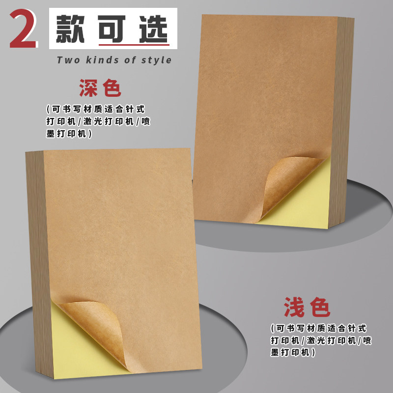 A4牛皮纸不干胶贴纸a4内切割标签打印纸深色纸箱色喷墨激光哑面白色光面自粘带背胶a4标签贴纸定制唛头高粘