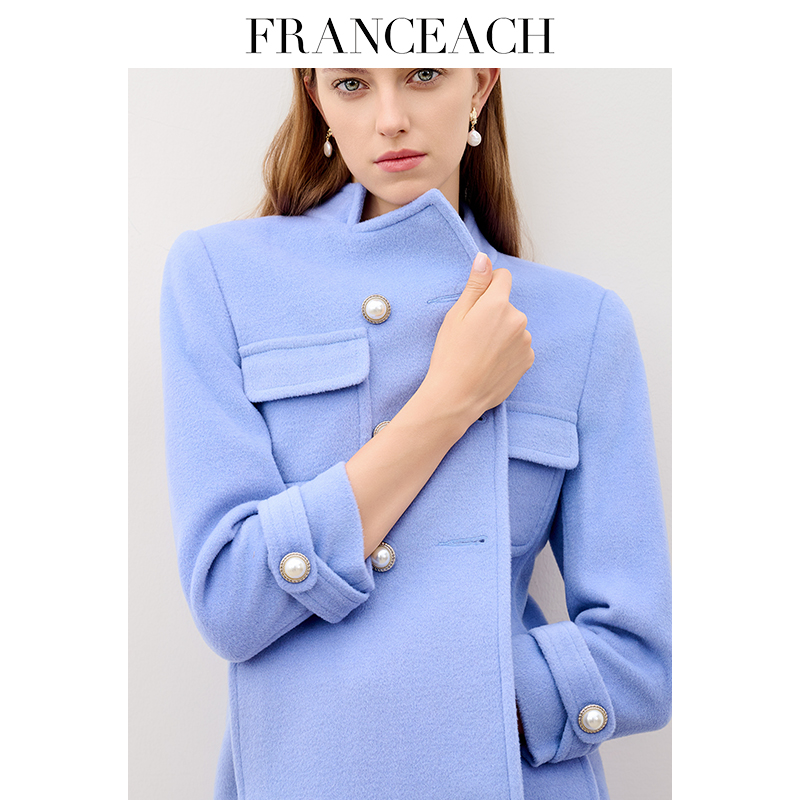 欧美英伦风双排扣立领羊毛呢子羊驼绒大衣女中长款毛呢外套冬加厚