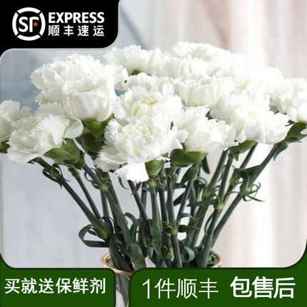 20支白色康乃馨单头云南鲜花颜色独特网红小狗插花款节日礼物