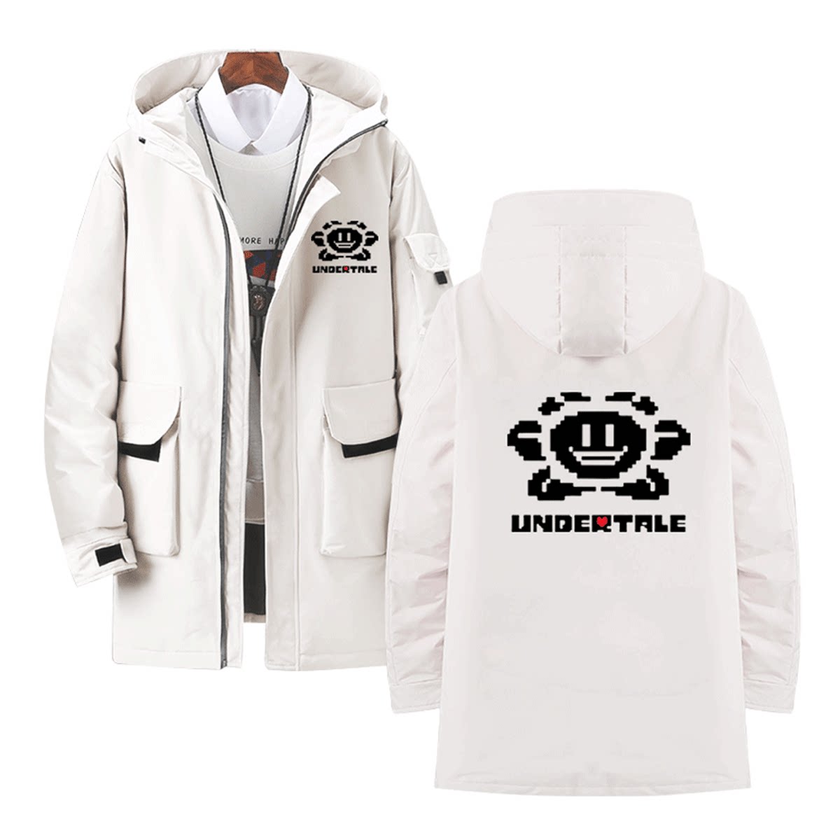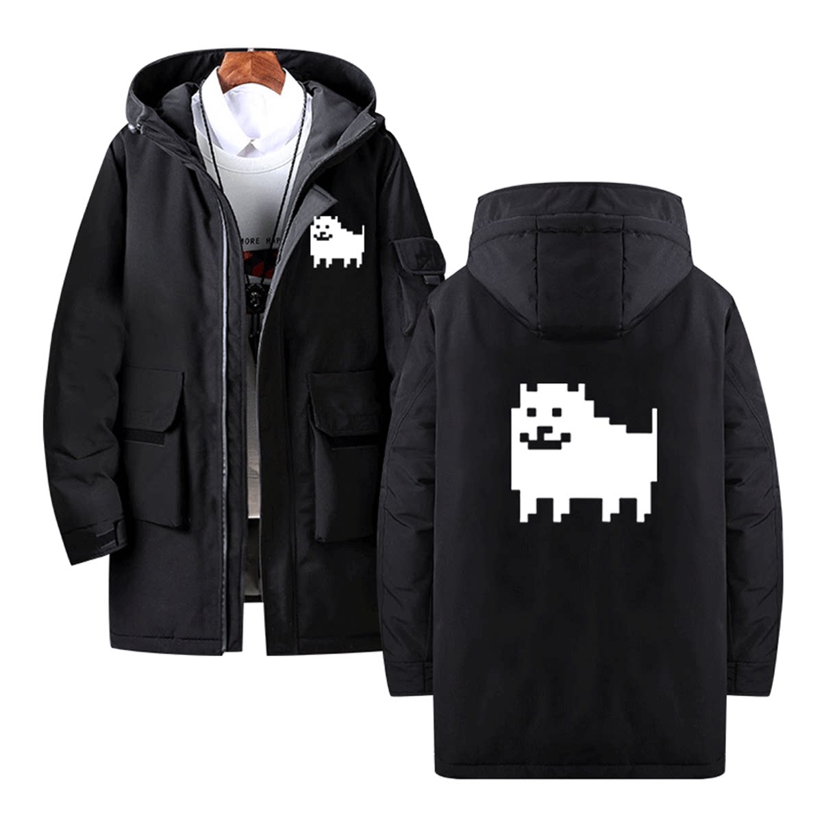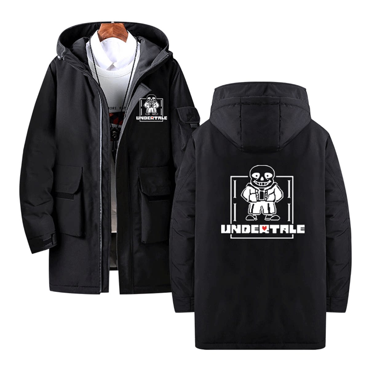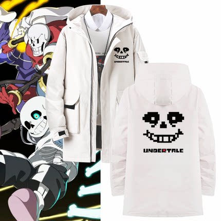 骷髅传说之下游戏Undertale男女休闲可定制外套连帽中长款羽绒服