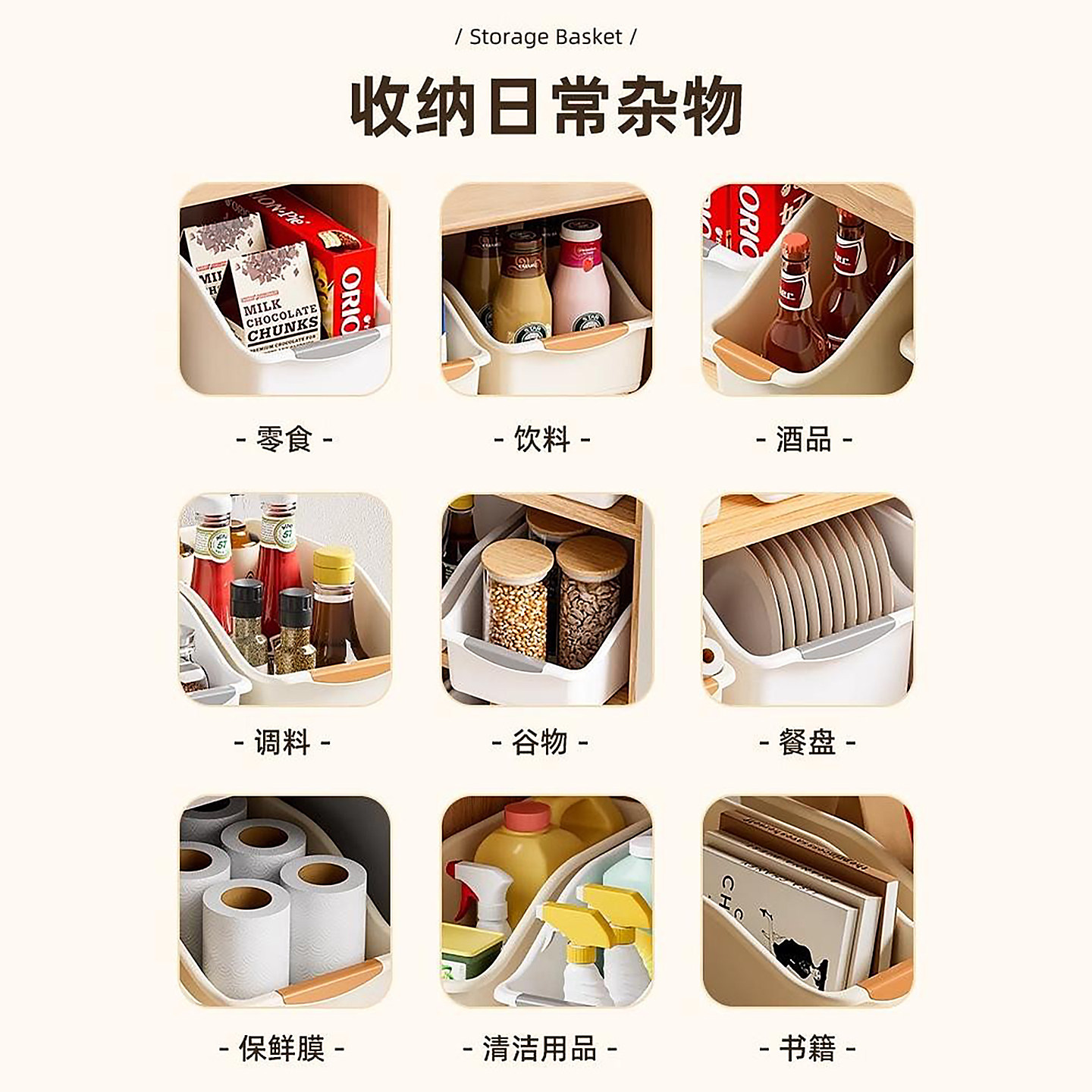 厨房收纳盒抽拉式零食锅具调料置物架橱柜整理盒带滑轮杂物储物筐