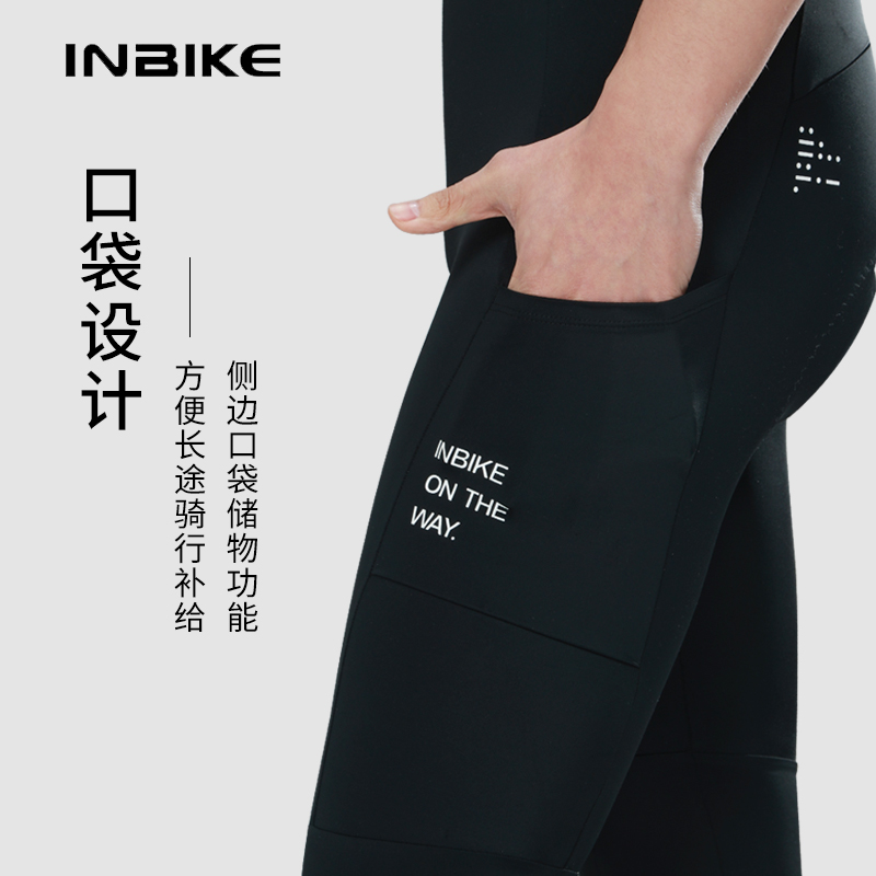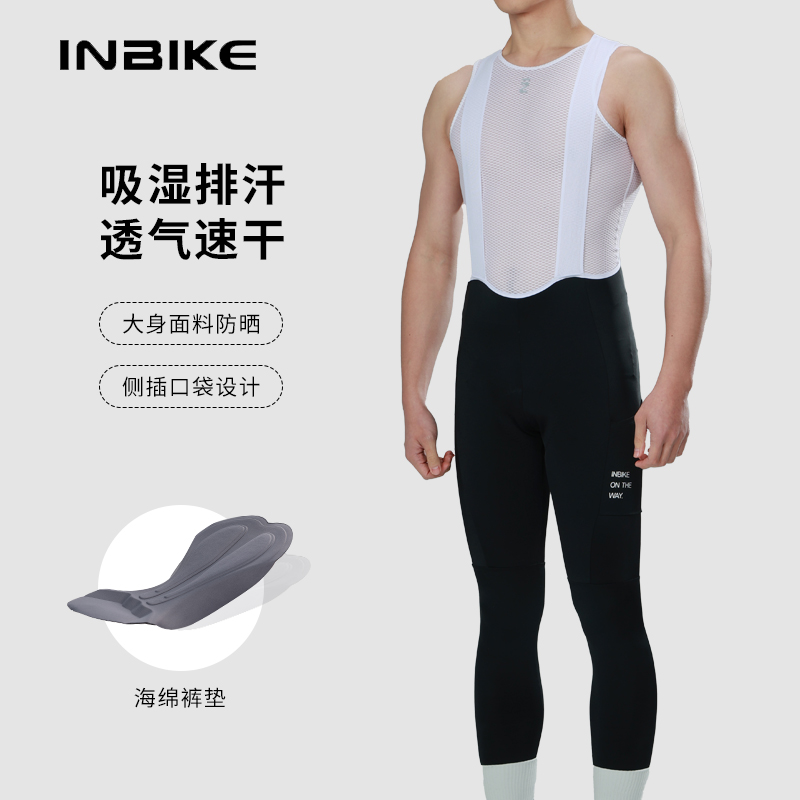 INBIKE春秋季骑行裤男长裤带口袋公路车自行车长款背带骑行裤男士