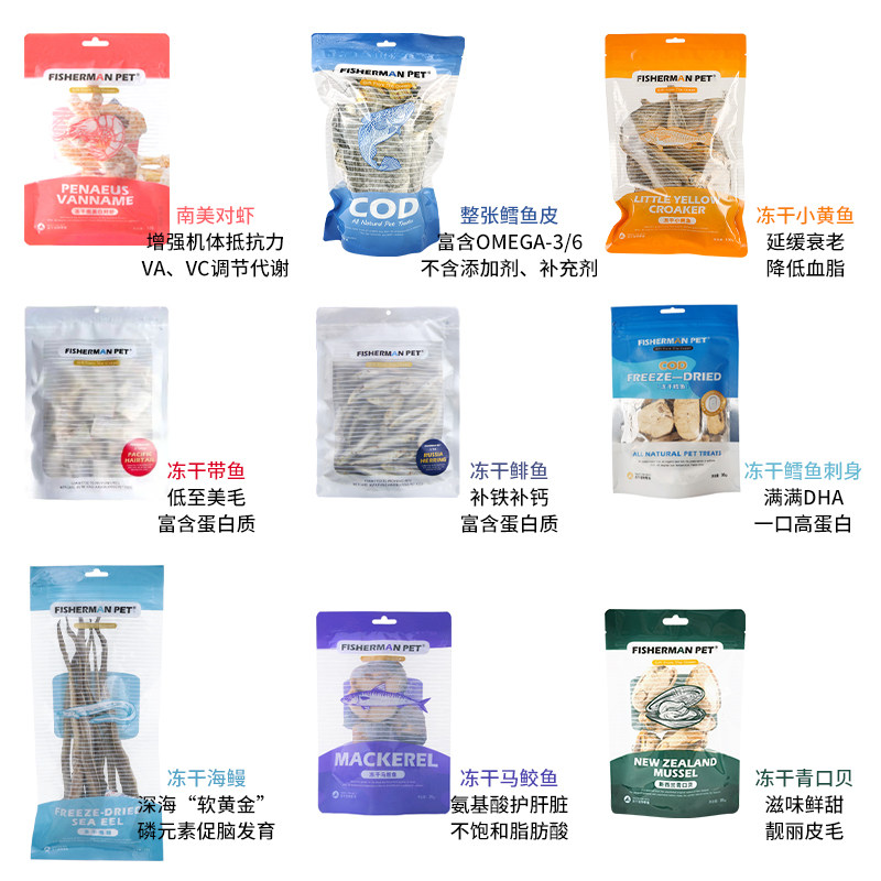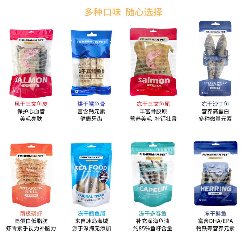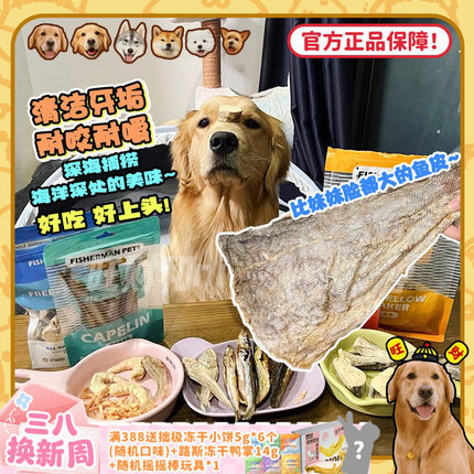 【旺财】FISHERMANPET渔夫牧场烘干鳕鱼皮冻干三文鱼大狗零食洁齿