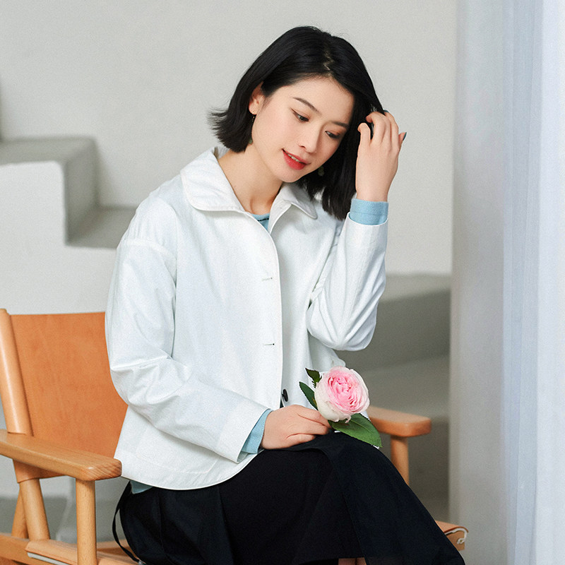 G21C-006【清水漾波】瓷片高端文艺三色棉质短款上衣风衣