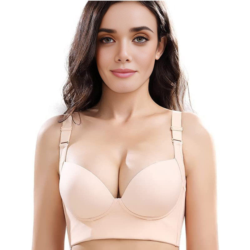 跨境聚拢收副乳无缝杯背心式塑身美背文胸无钢圈无胸垫调整型