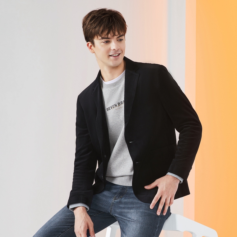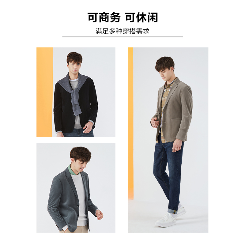 【灯芯绒】柒牌男士休闲西服秋冬季新款修身单西商务西装外套