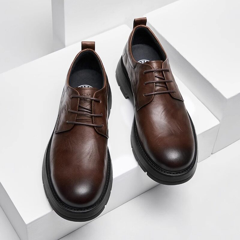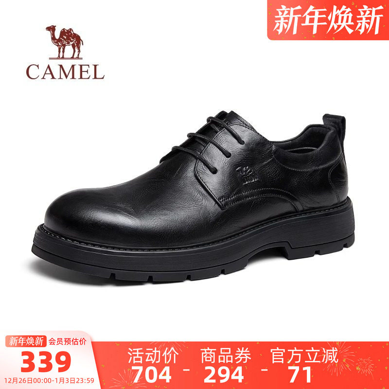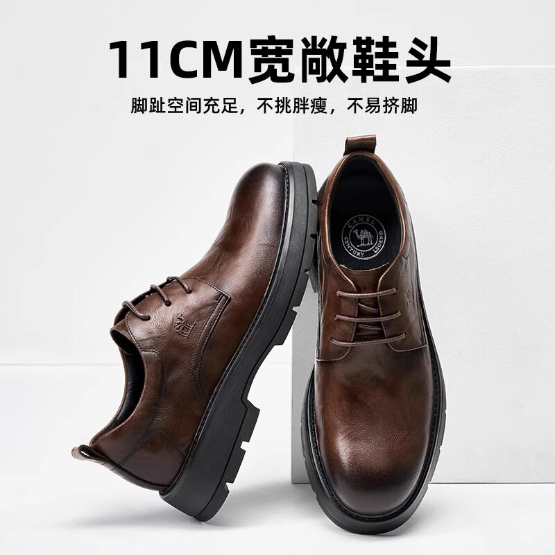 骆驼男鞋2025秋季新款牛皮复古商务德比鞋擦色婚礼宴会绅士正装鞋