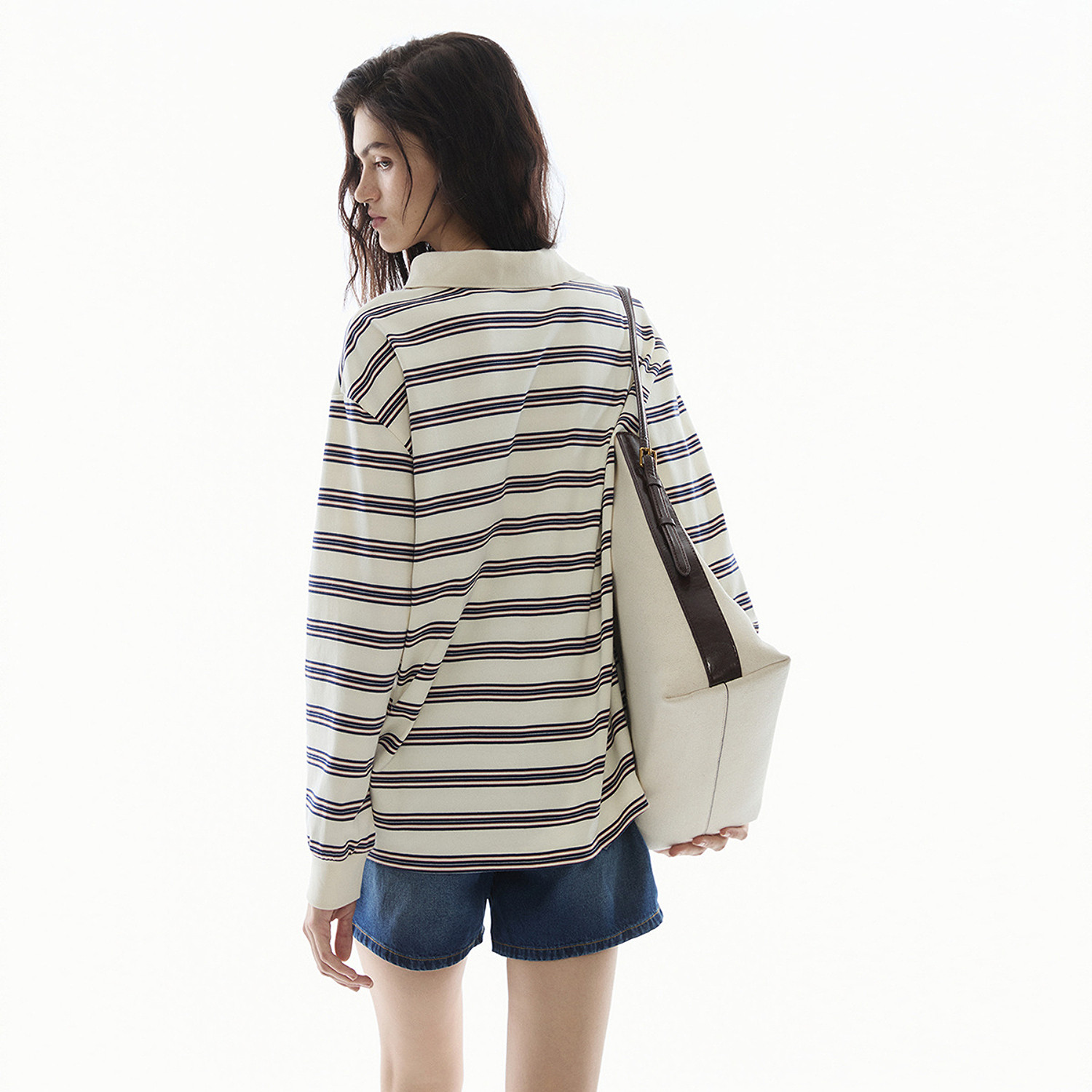 长袖Polo衫条纹T恤时尚美式休闲