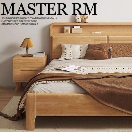 全友家居北欧纯实木床 全实木现代简约1.8米双人床家用1米5主卧室