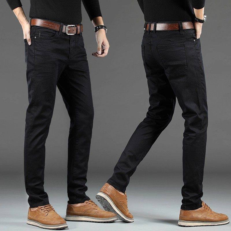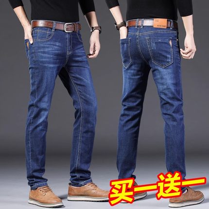 Yishion以纯官方时尚正品秋冬款牛仔裤男士修身直筒加绒休闲裤男