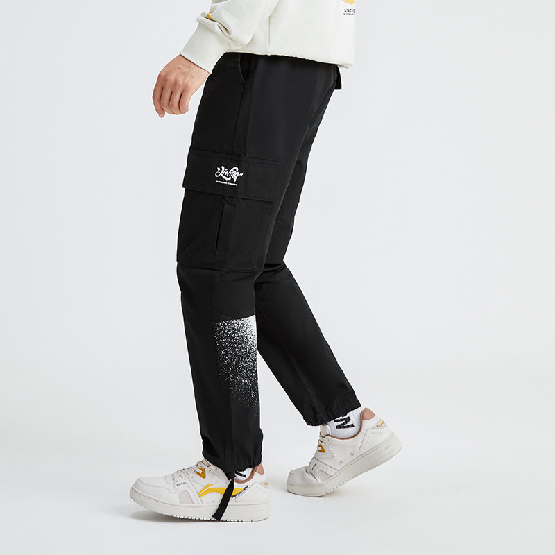 李宁滑板系列 男子运动宽松长裤 纯棉透气休闲束脚收口AKXR395-1