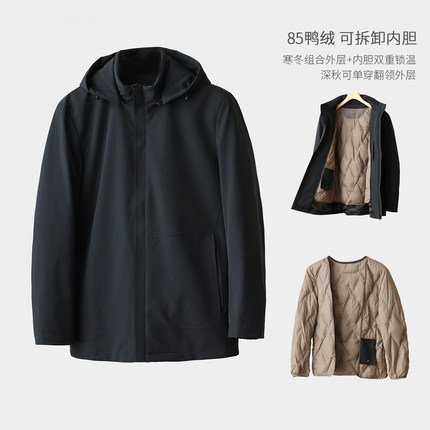 85鸭绒 可拆卸内胆 男士连帽羽绒服 商务夹克衫开衫外套 秋冬款