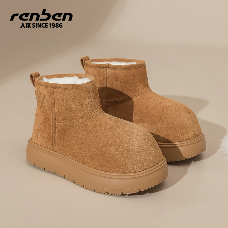 人本卡皮巴拉雪地靴冬季厚底大头加绒新款磨砂皮毛休闲保暖棉鞋女