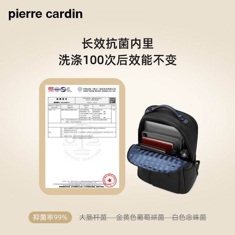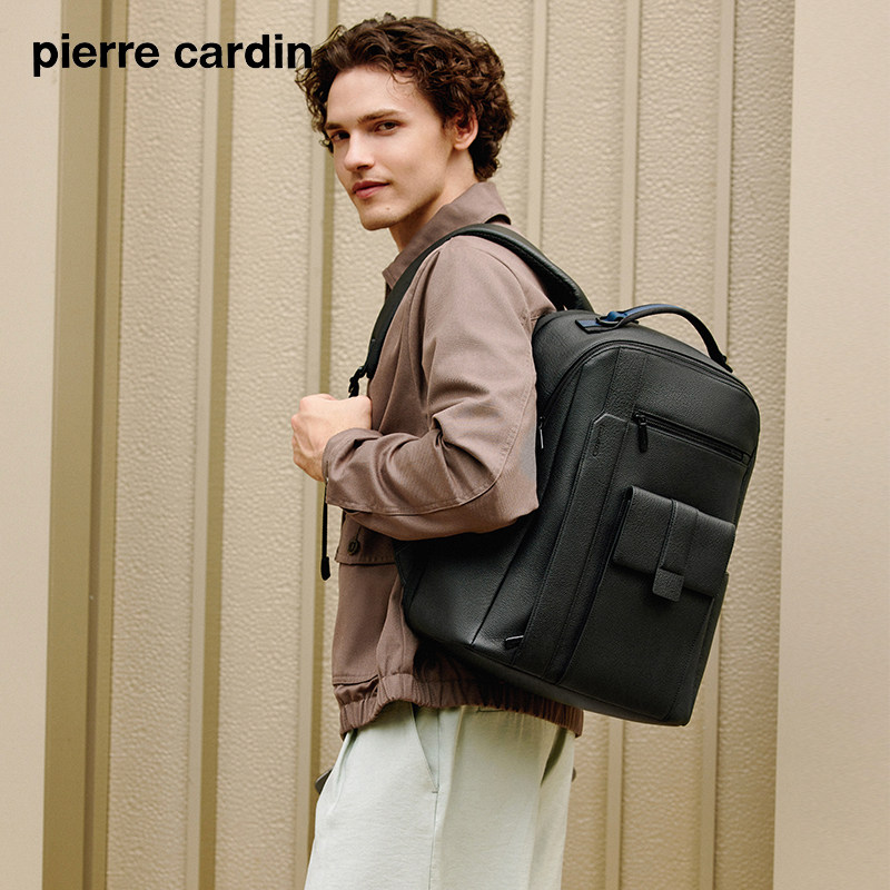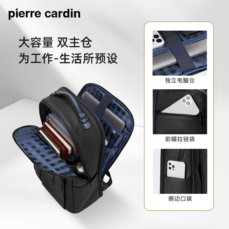皮尔卡丹男士双肩包商务真皮大容量电脑背包简约通勤男款牛皮书包