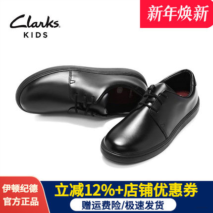 clarks伊顿纪德联名男童牛皮鞋学生校园系带黑皮鞋真皮C19E103促