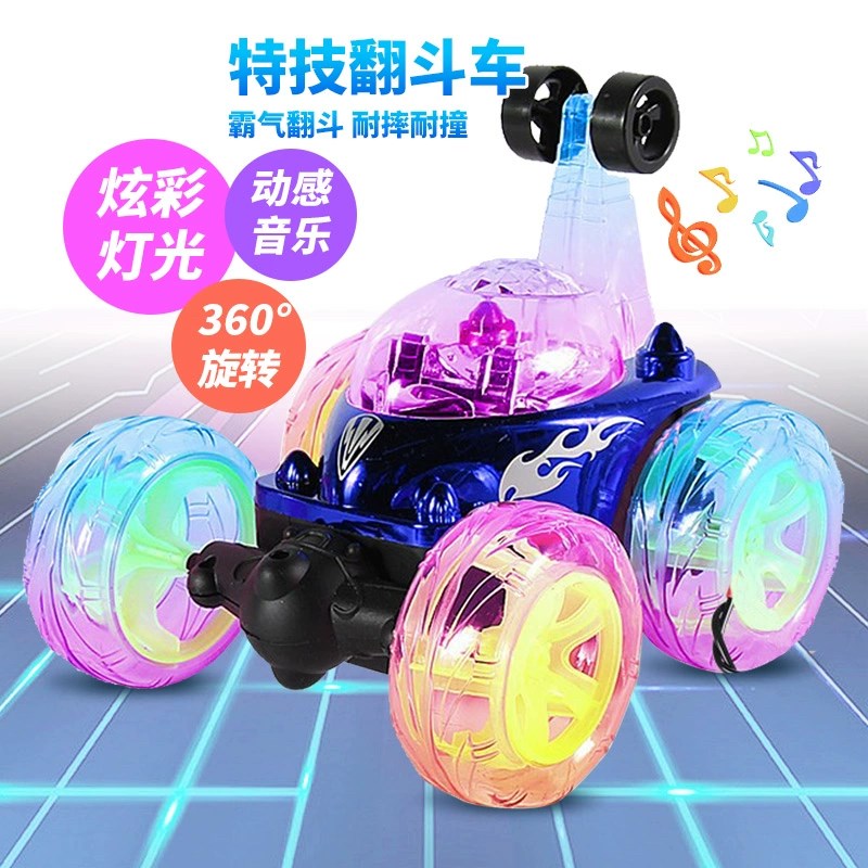 遥控特技翻滚车声光儿童男孩玩具C翻跟斗遥控车可充电汽车灯光音