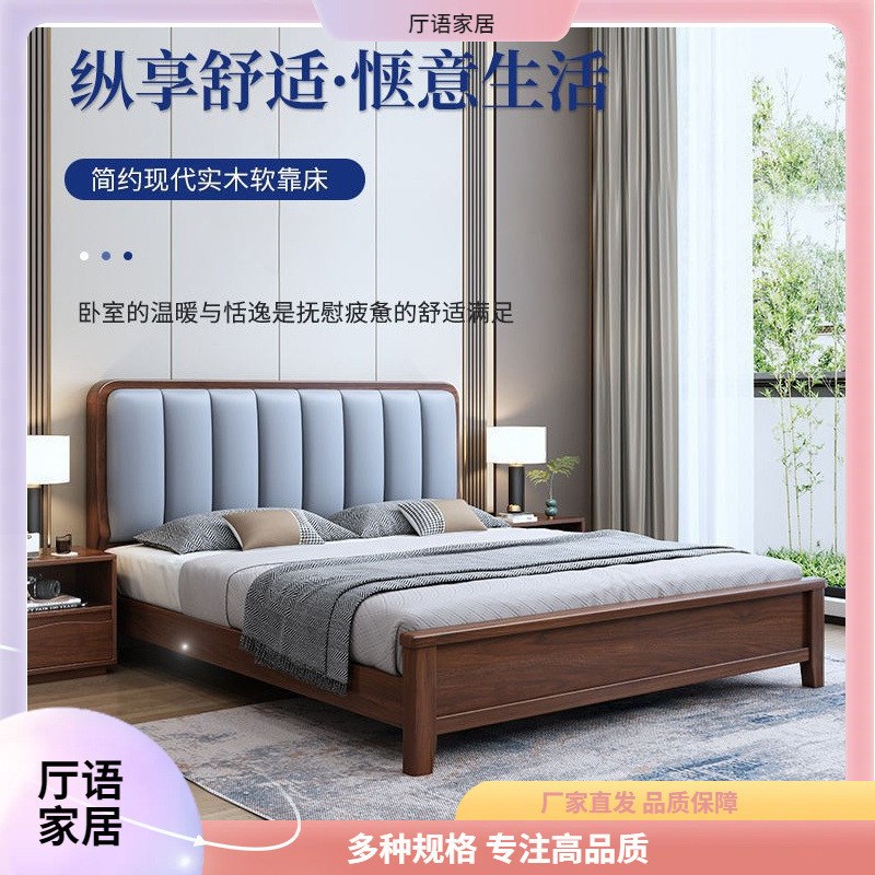新中式轻奢实木床1.8x2米双人主卧婚床现代简约1.5床头软单人床