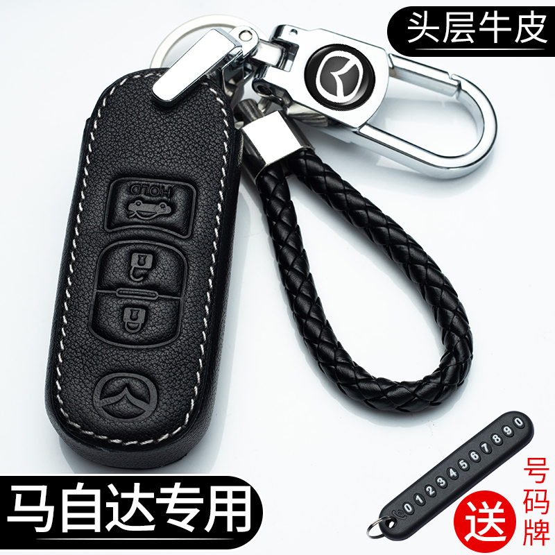 适用马自达3昂克赛拉cx50cx30阿特兹cx4cx5cx8汽车真皮钥匙套包扣